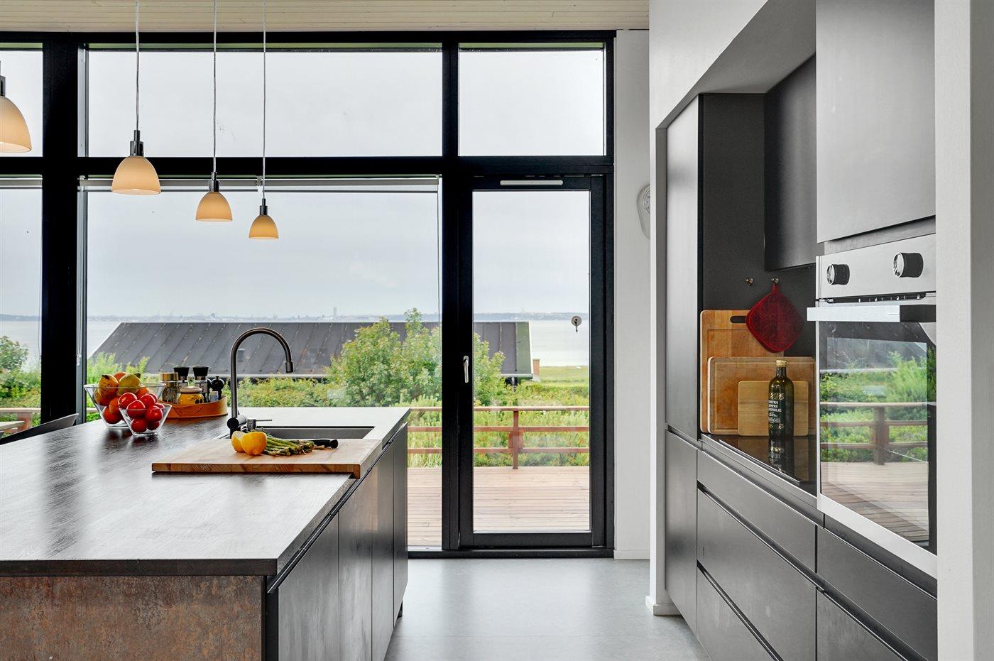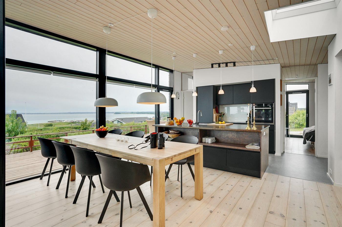 Køkkenet er udstyret med 1 køleskab. Der er 4 induktionskogeplader, varmluftovn, mikrobølgeovn samt opvaskemaskine.