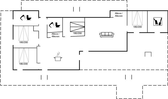 Der er i alt 4 soveværelser. Sovepladserne fordeler sig på: 8 sovepladser i dobbeltsenge. Derudover er der 1 stk. barneseng.