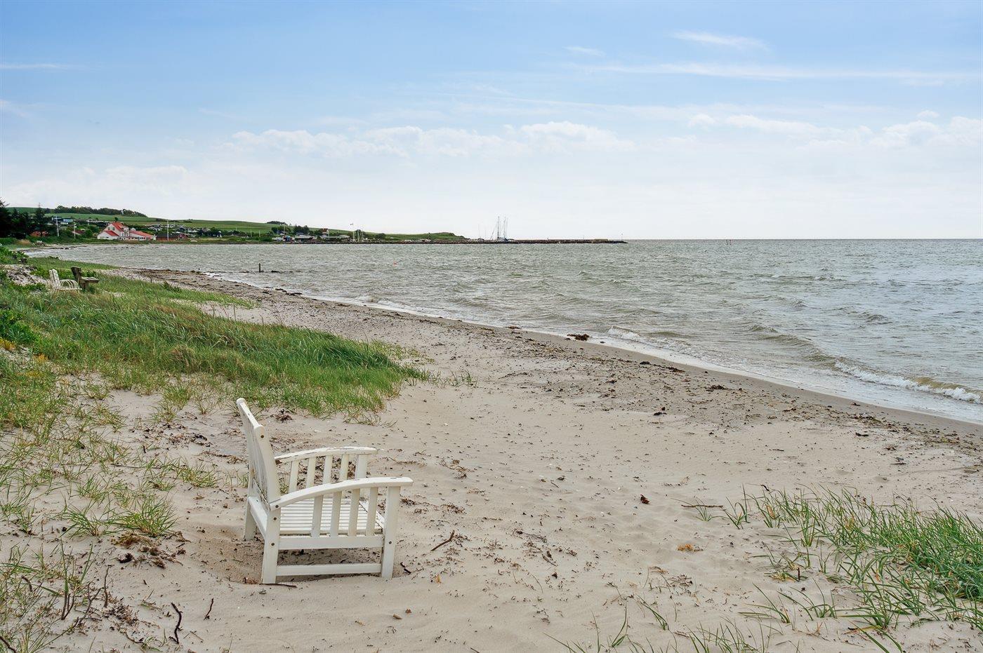 Huset ligger på en rolig vej, og terrassen og haven er skærmet fra naboer og trafik, hvilket giver en dejlig privat og afslappende atmosfære. I enden af haven finder man direkte adgang til stranden, hvor man kan nyde en forfriskende svømmetur i det klare vand eller en afslappende dag på stranden.