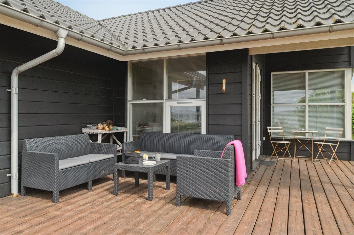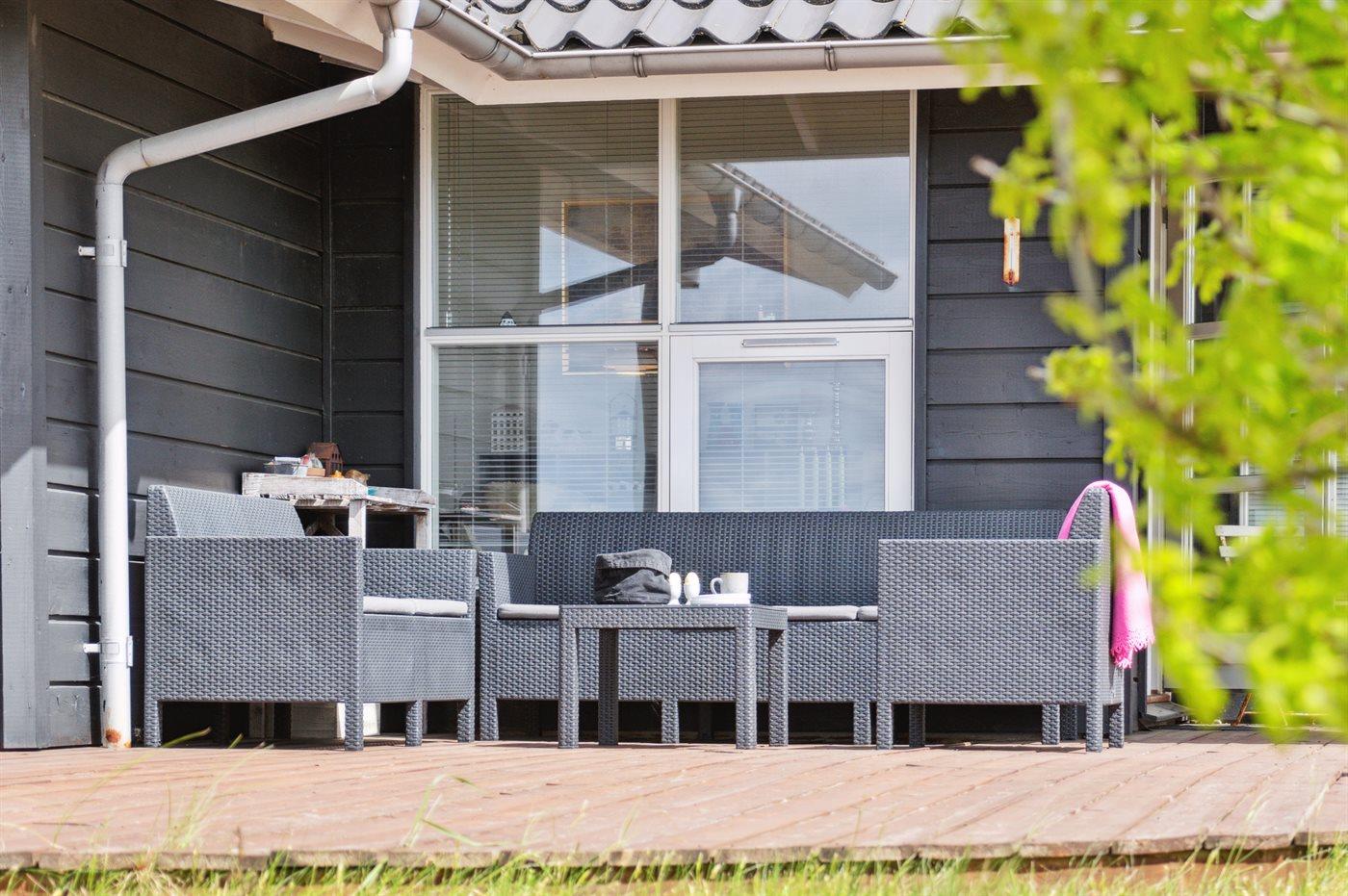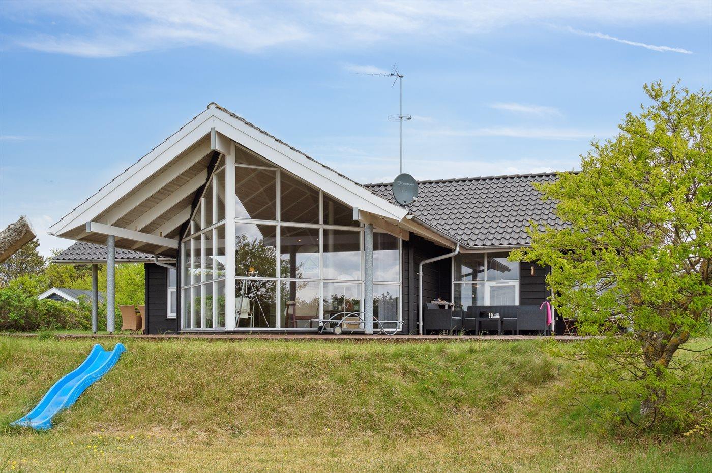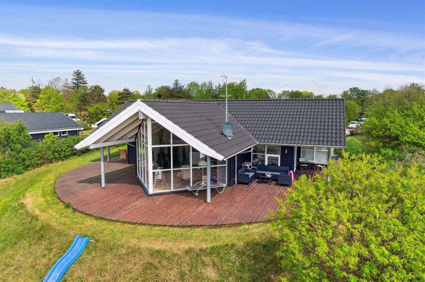 Ferieboligen er beliggende på en 1550 m² stor naturgrund. Der er 25 m til havet. Nærmeste forretning er beliggende i en afstand af 2500 m. Til ferieboligen hører åbent terrasseareal. Desuden er der overdækket terrasse. Trampolin. Rutchebane. Grill til rådighed. Parkering ved ferieboligen.