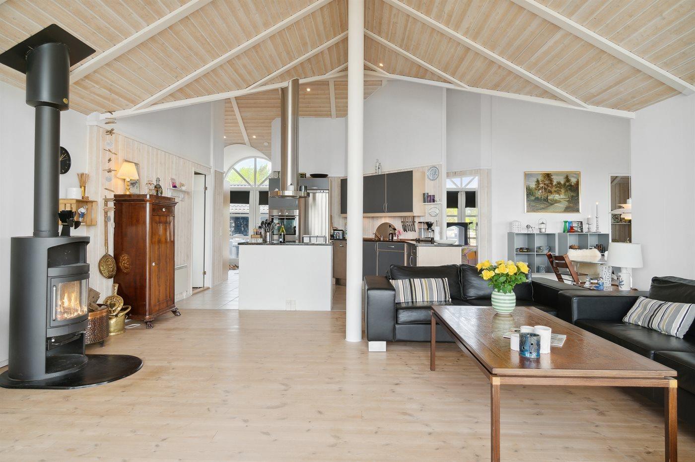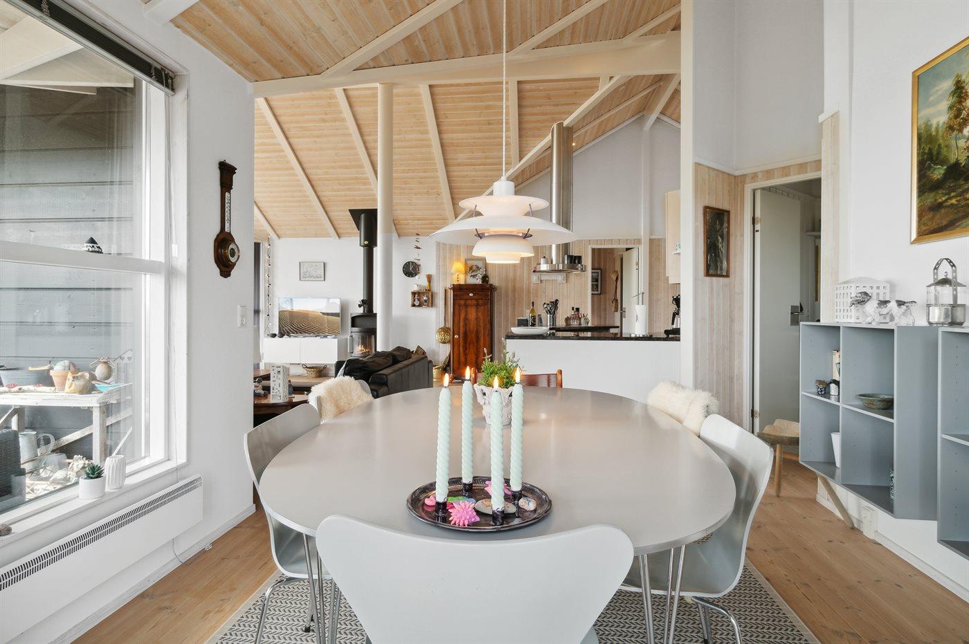 Bygget i 2005, er dette klassiske sommerhus stadig moderne og lyst med højt til loftet og store vinduer, der lader lyset strømme ind og giver mulighed for at nyde den betagende udsigt fra de fleste rum. Et stort køkkenalrum og en hyggelig brændeovn er centrale funktioner i huset og inviterer til hyggelige stunder og samvær med venner og familie. Huset er velegnet til otte personer, hvoraf de to sengepladser i køjesenge er beregnet til børn.