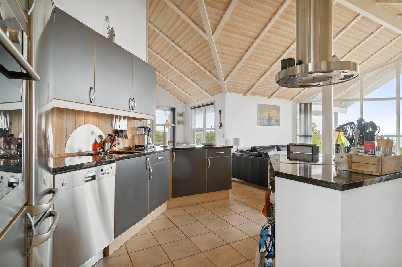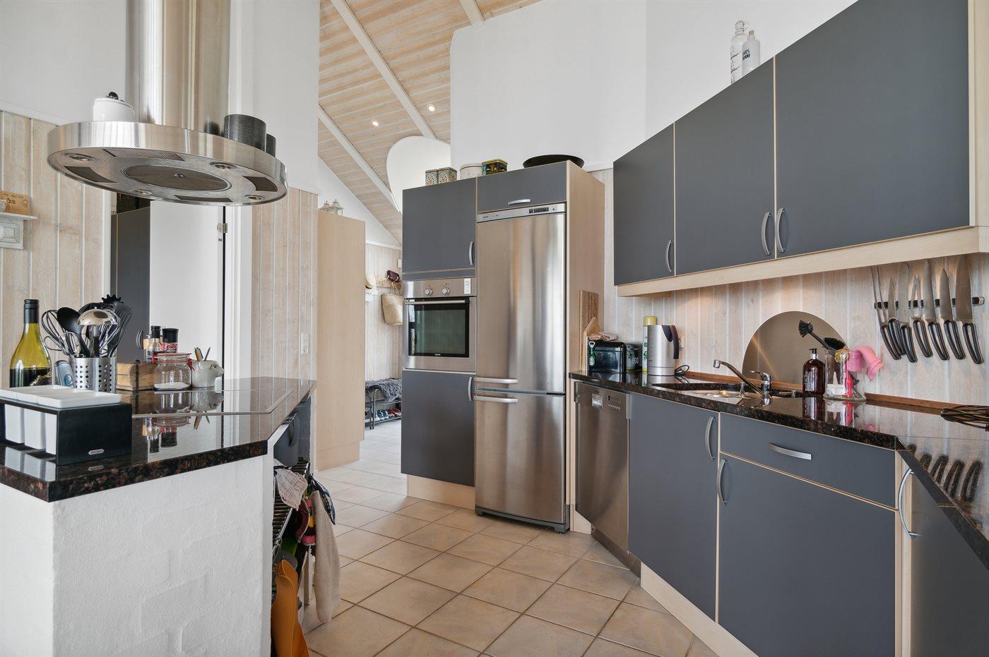 Køkkenet er udstyret med 1 køleskab. Der er 4 induktionskogeplader, varmluftovn, mikrobølgeovn samt opvaskemaskine.