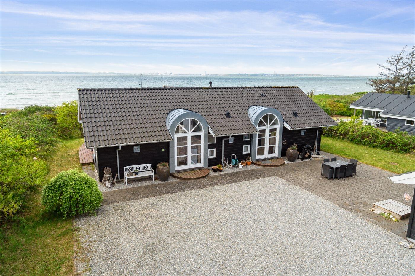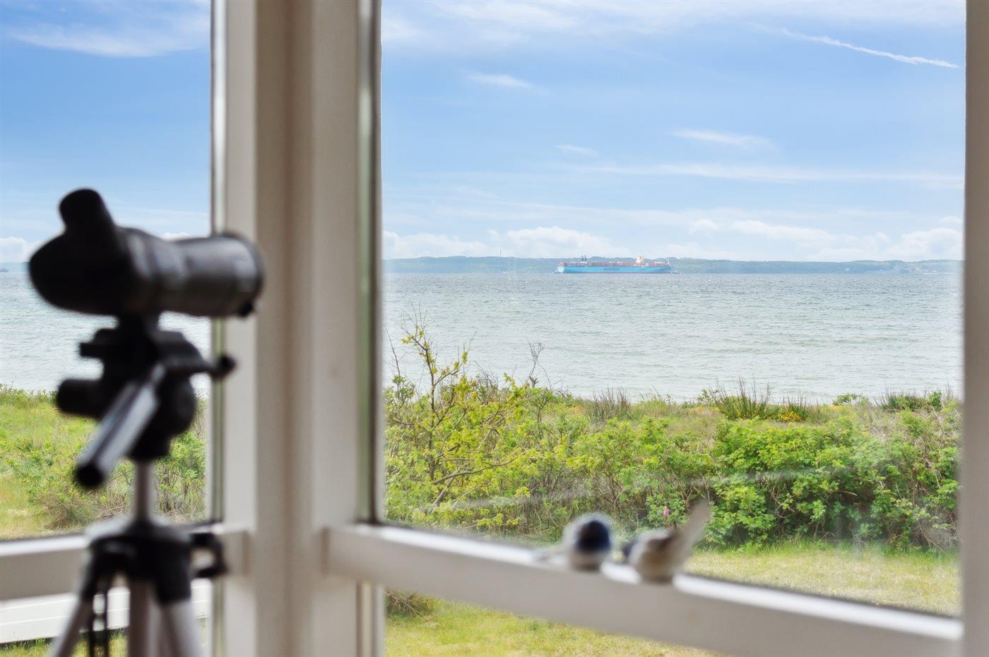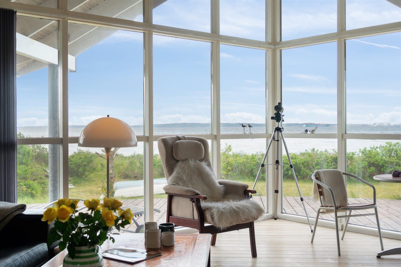 Nyd panoramaudsigt og direkte strandadgang i dette moderne sommerhus ved Skødshoved Strand.