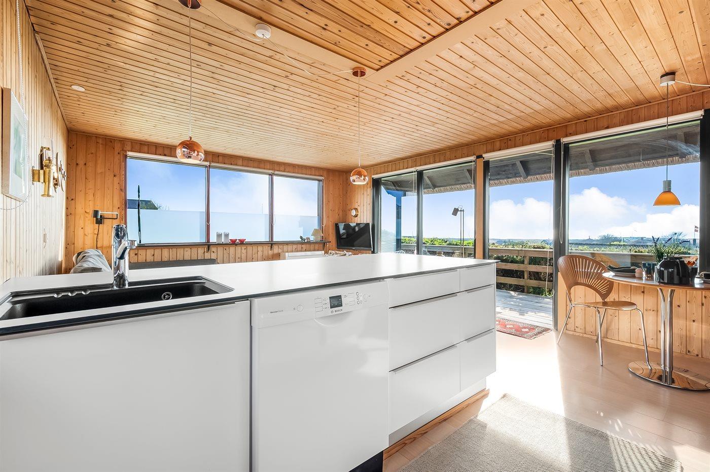Køkkenet er udstyret med 1 køleskab. Der er 4 keramiske kogeplader, varmluftovn samt opvaskemaskine.
