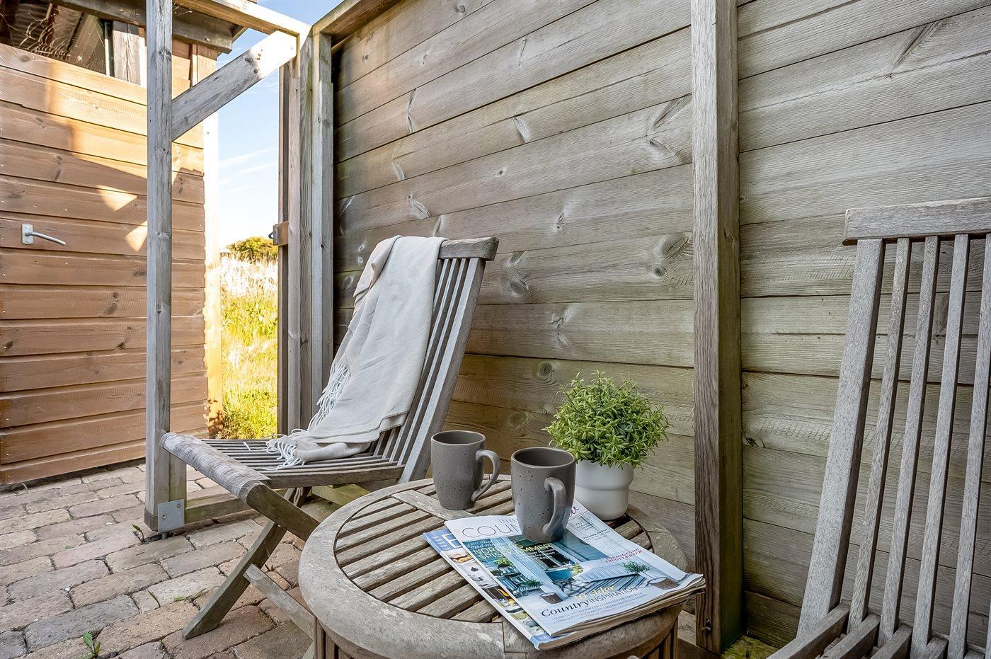 Hyggeligt sommerhus ved Århus Bugt med privat terrasse og kort afstand til både havet og marinaen.