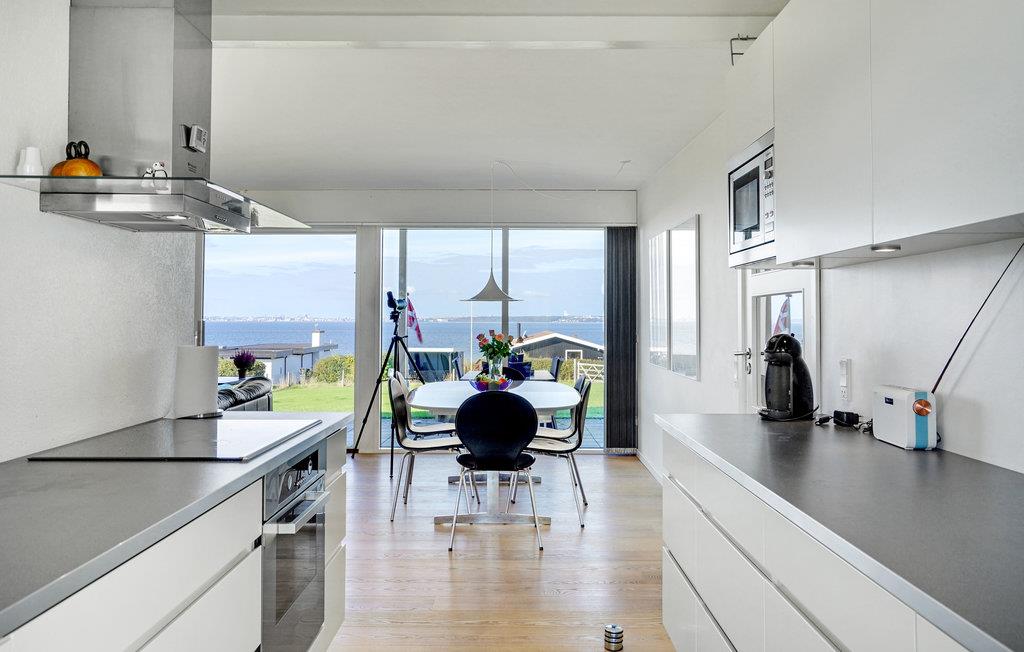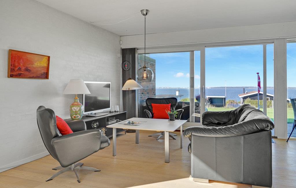Velkommen til dette skønne sommerhus, der har store vinduesfronter ud mod havet. Huset er oversvømmet med naturligt lys, hvilket skaber en behagelig atmosfære. I den åbne stue kan I lave mad og spise dagens måltider, lade børnene lege eller bare slappe af sammen.