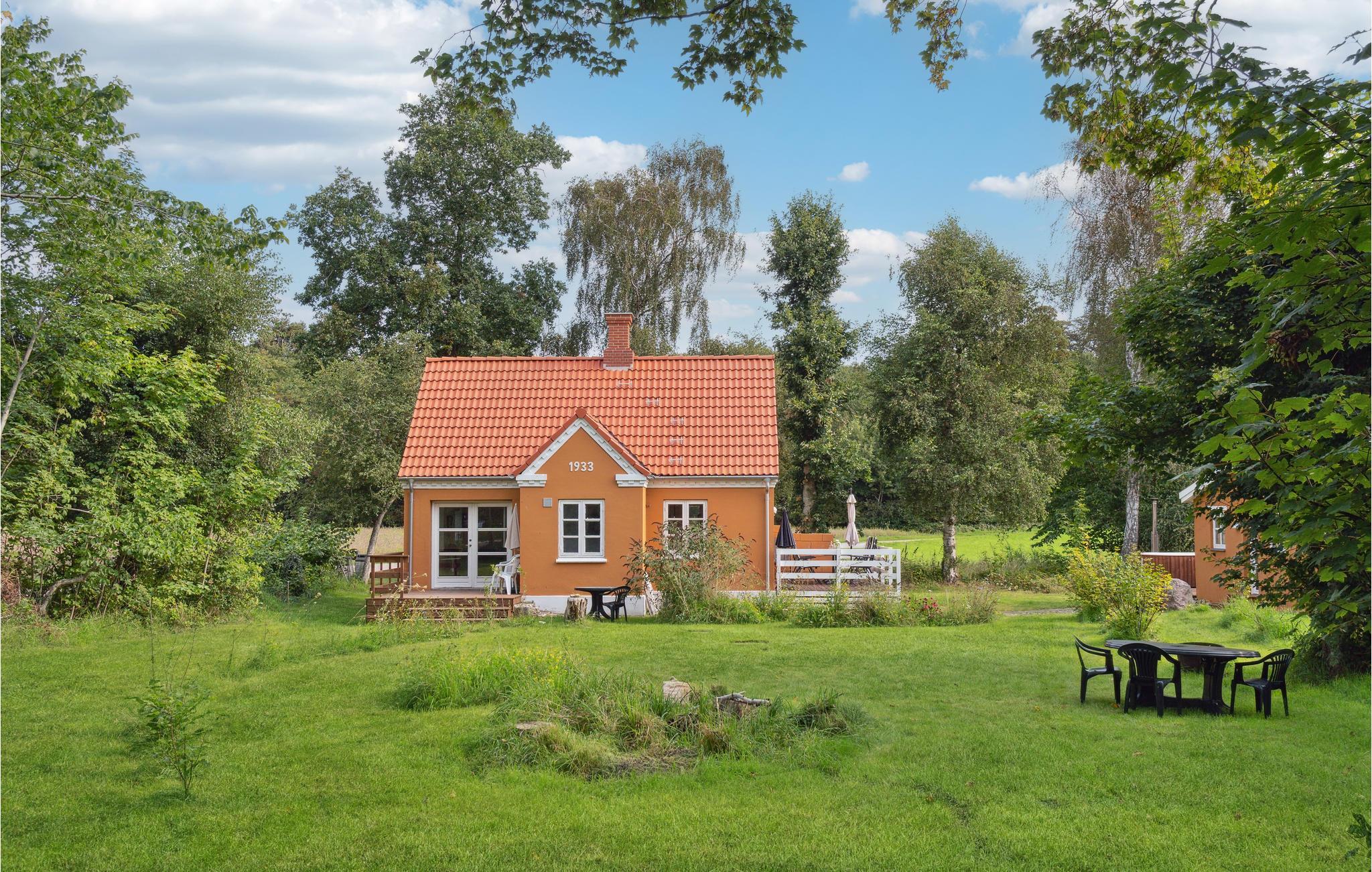 Hyggeligt feriehus ved Skødshoved Strand med vildmarksbad og natur tæt på stranden.