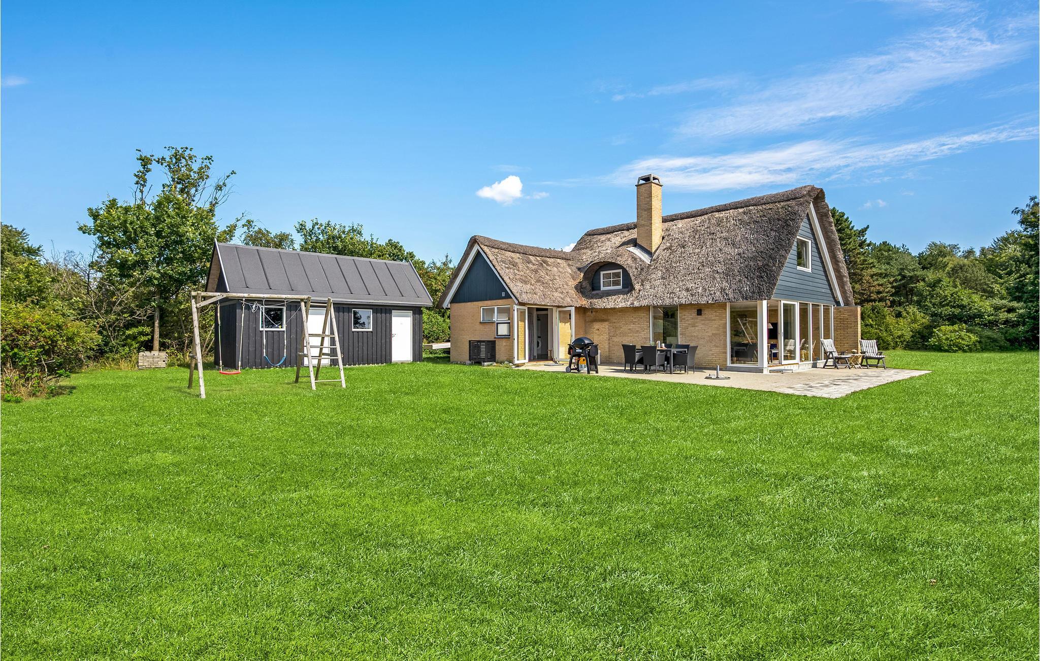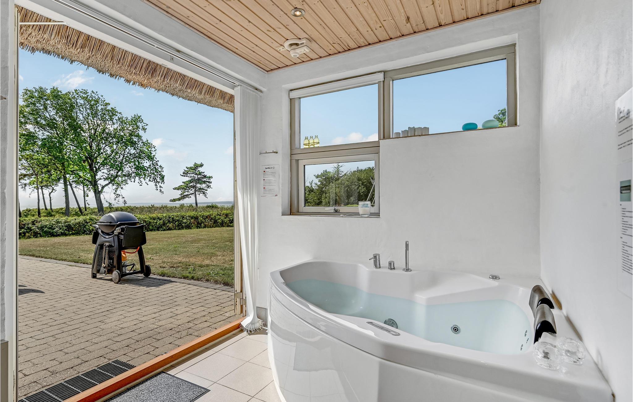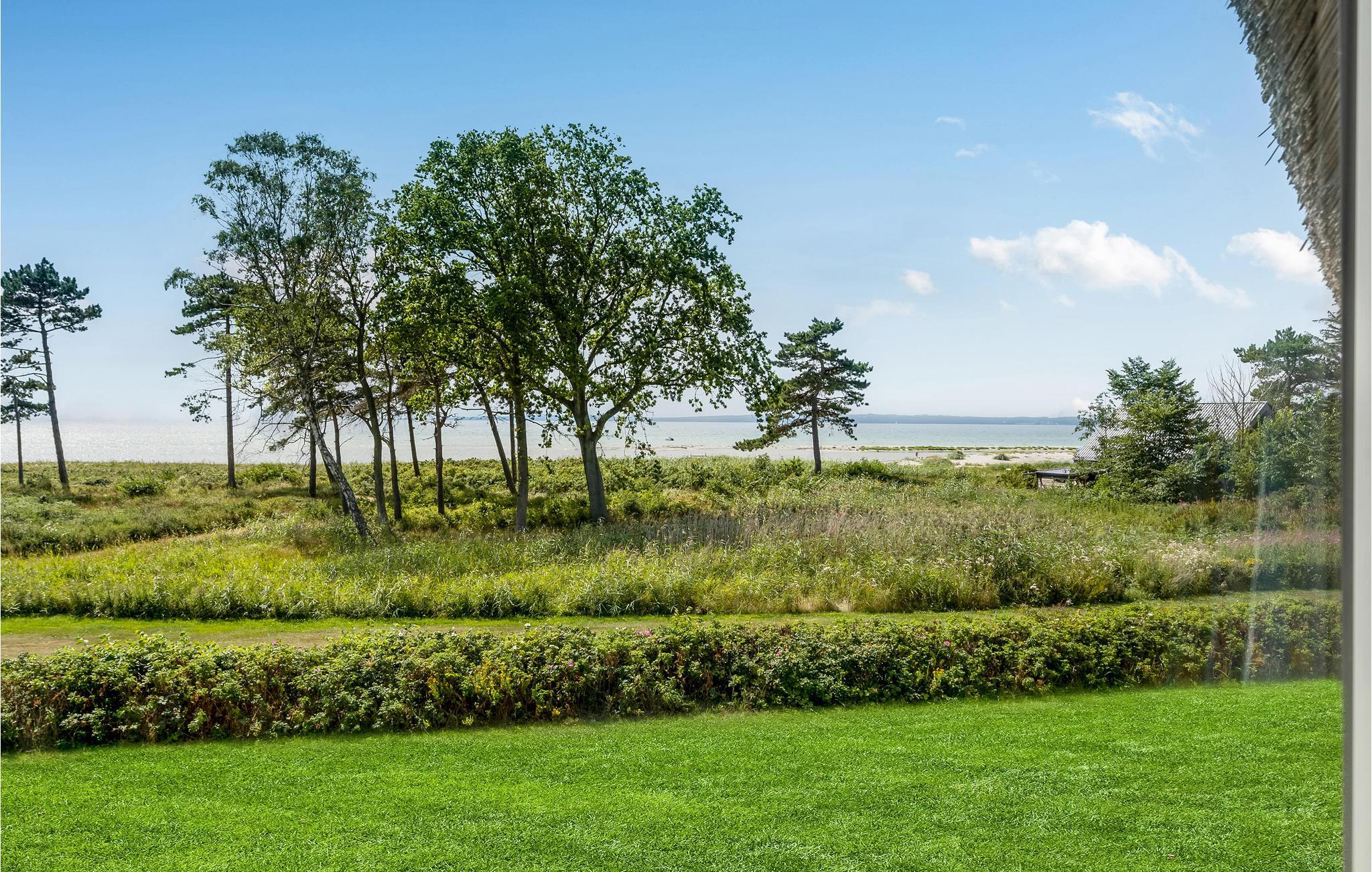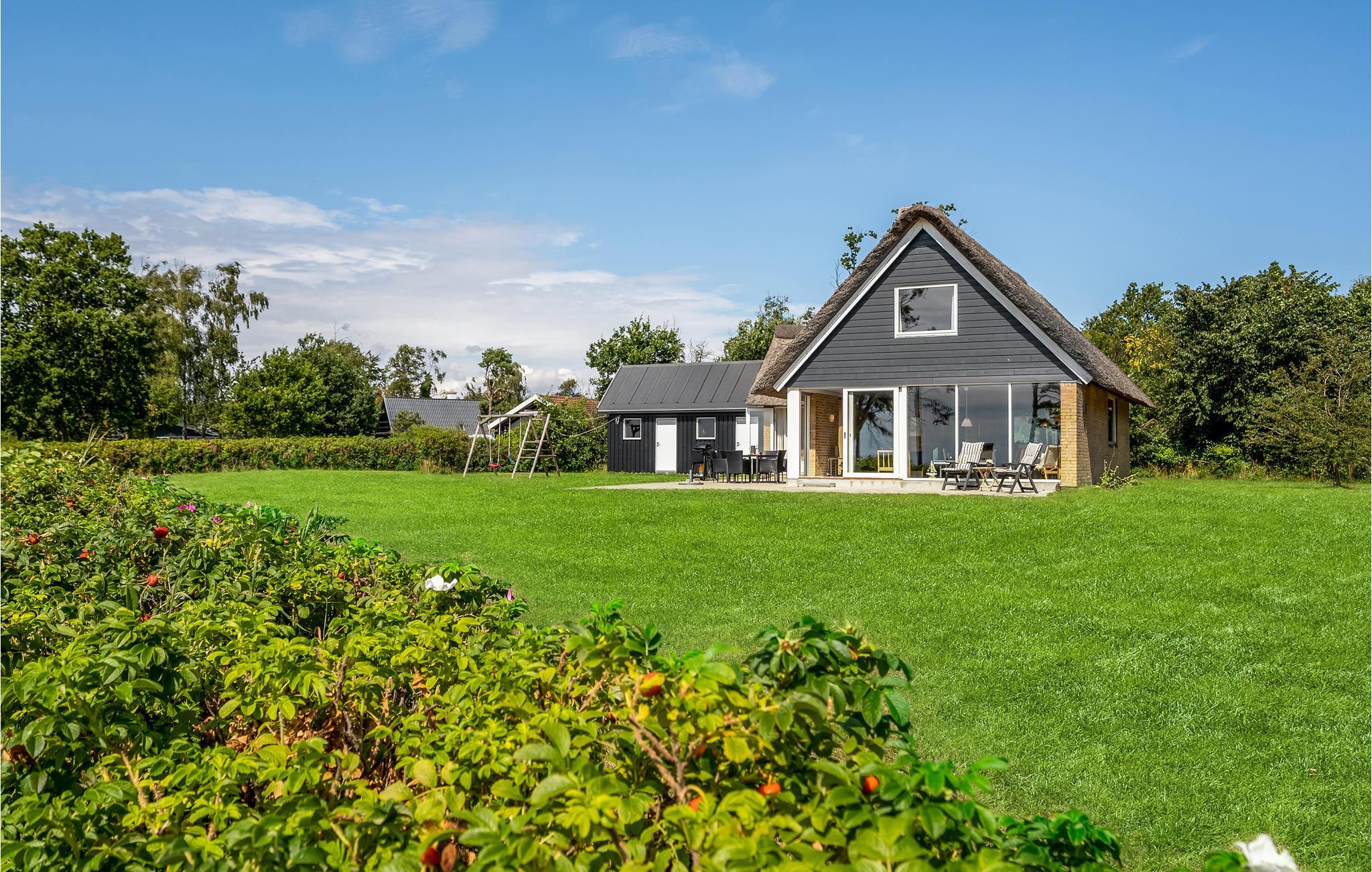 Smukt stråtækt luksushus tæt på havet med panoramaudsigt, sauna og spabad for afslappende ferie.