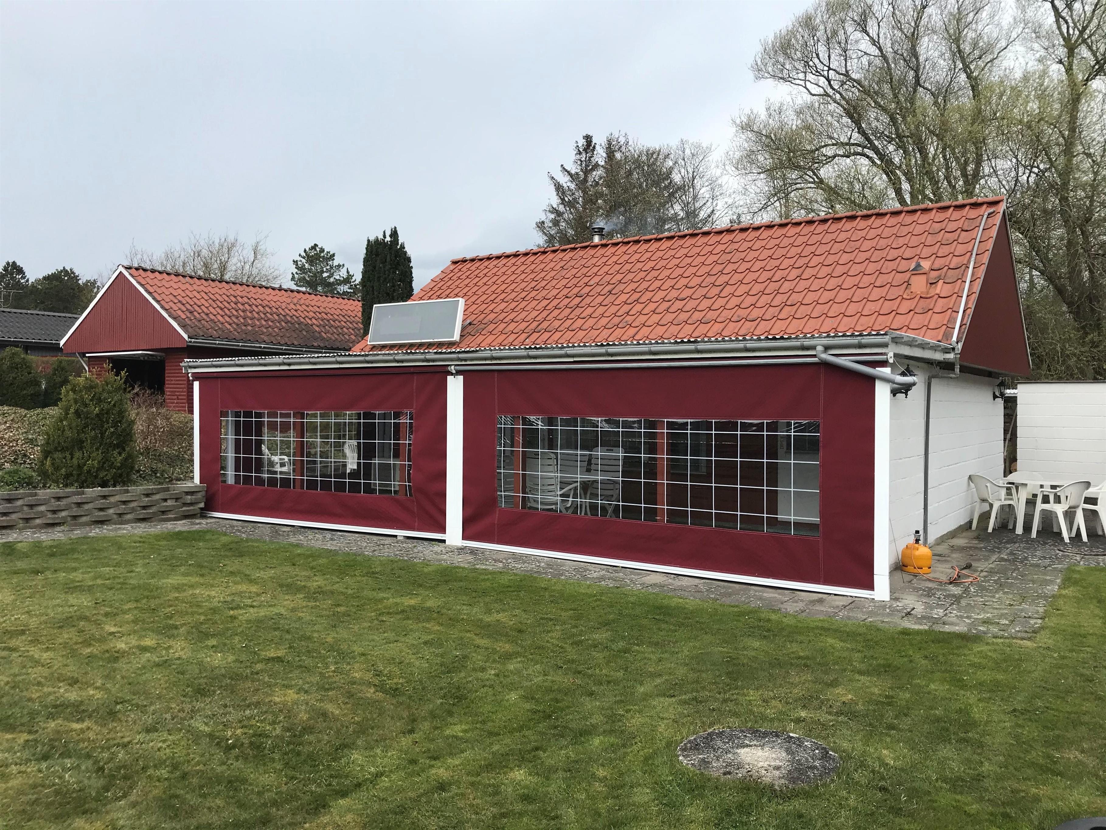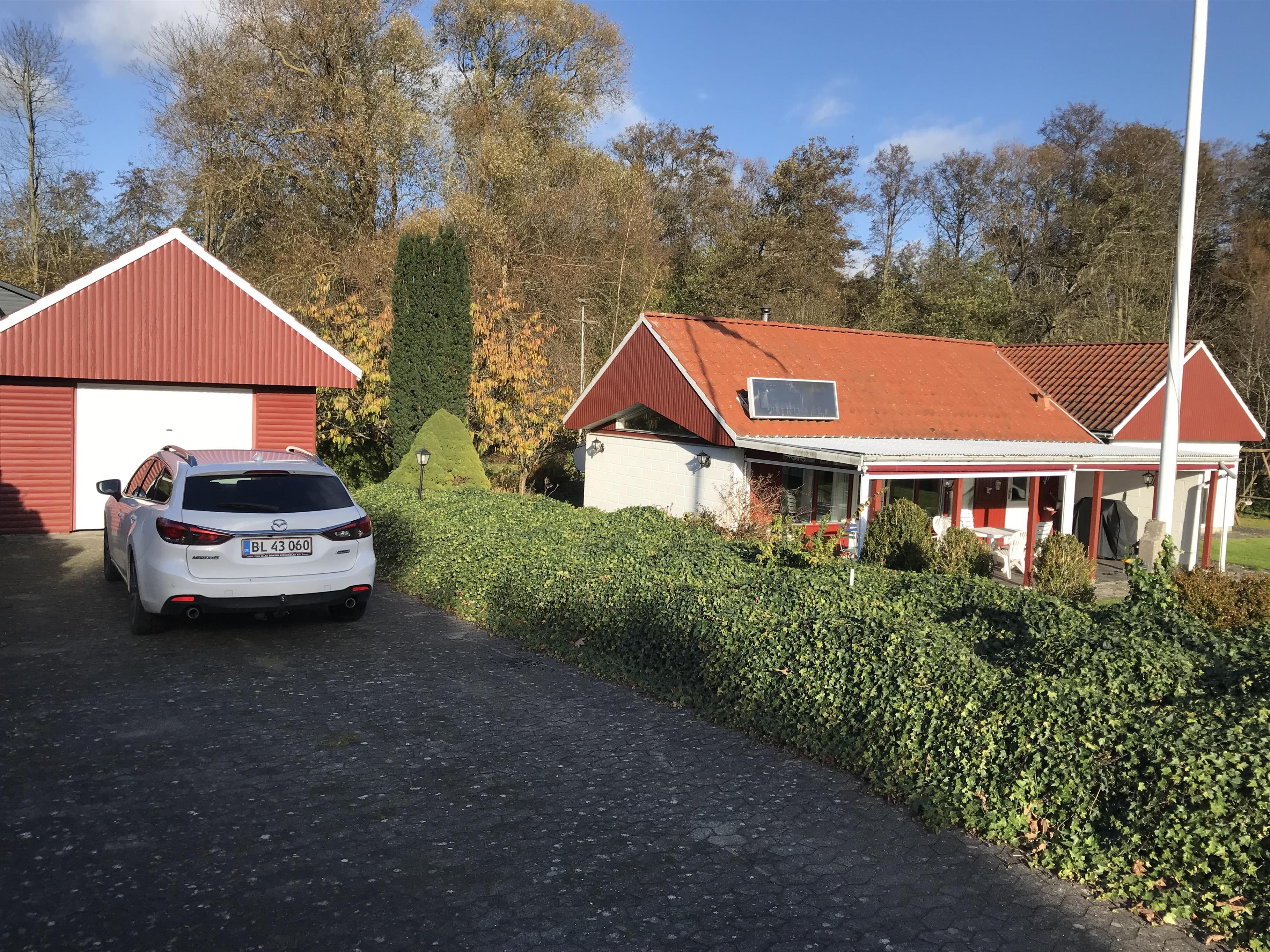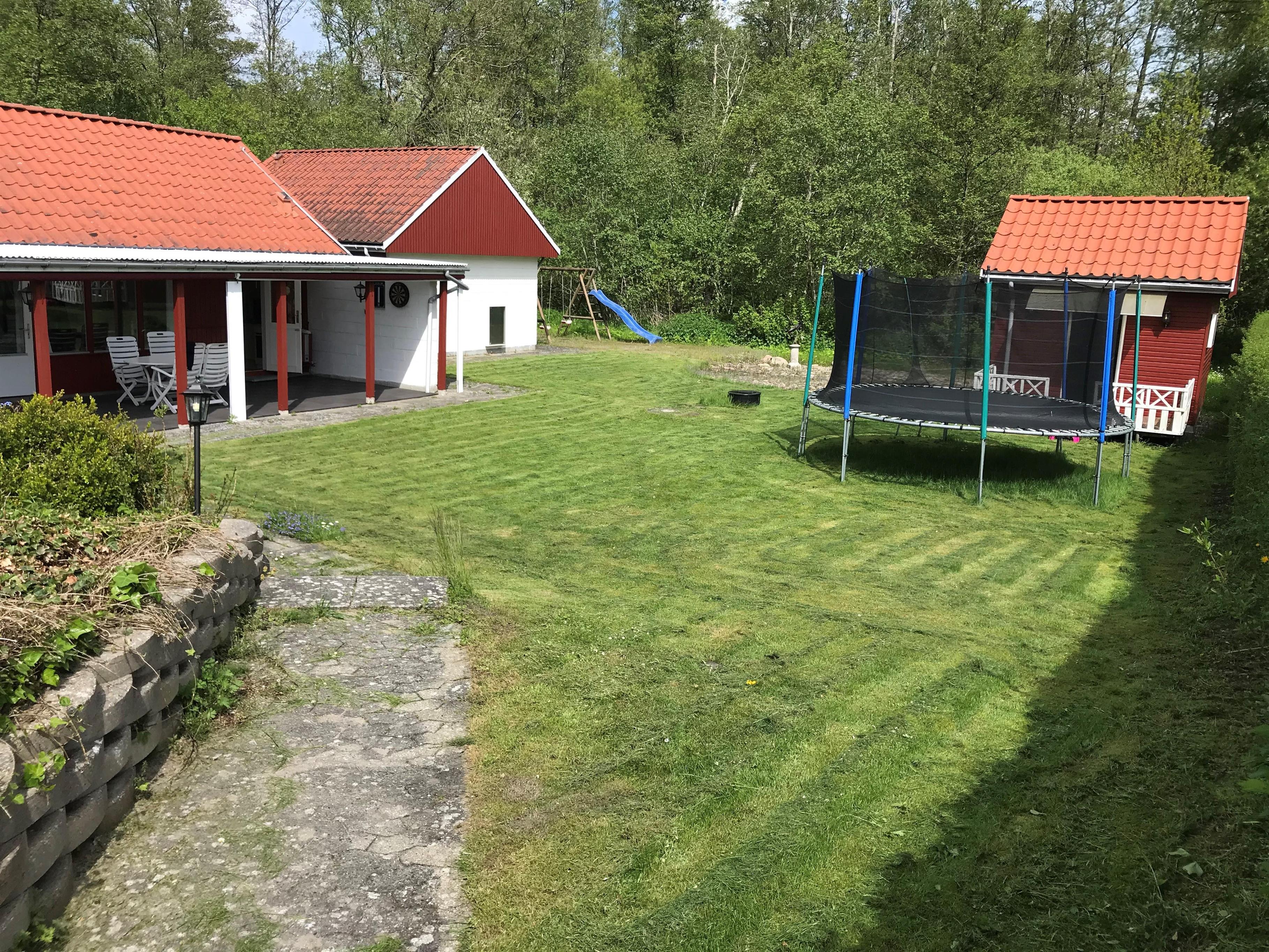 Huset ligger på en dejlig, stor grund med en skøn overdækket terrasse, hvor man både kan nyde solen og samtidig være i læ. Hvis det er køligt, er det muligt at dække terrassen af med baldakiner med vinduer, så lysindfaldet bevares. Der er rig mulighed for at grille, da der er en stor, ny gasgrill til rådighed.