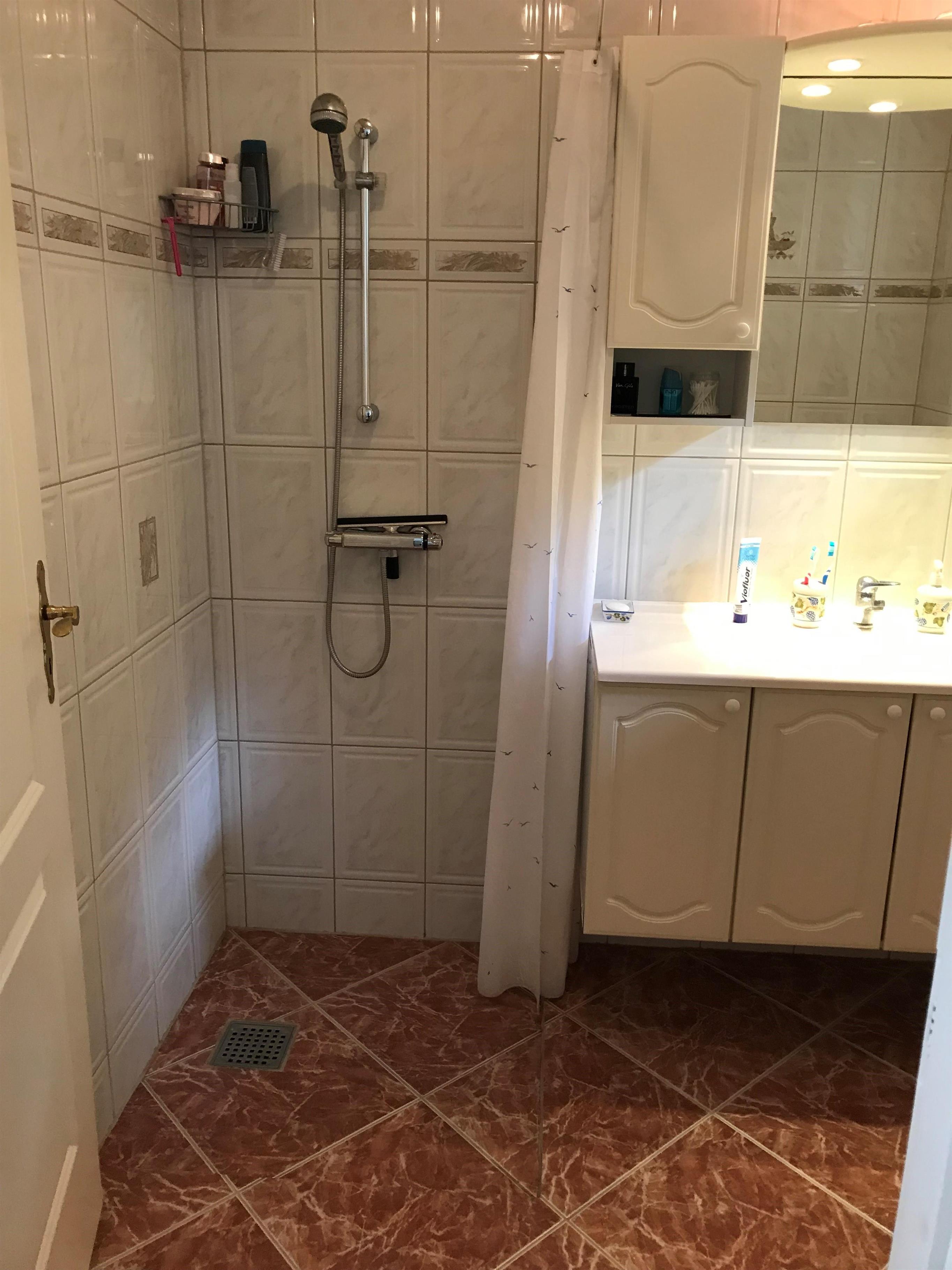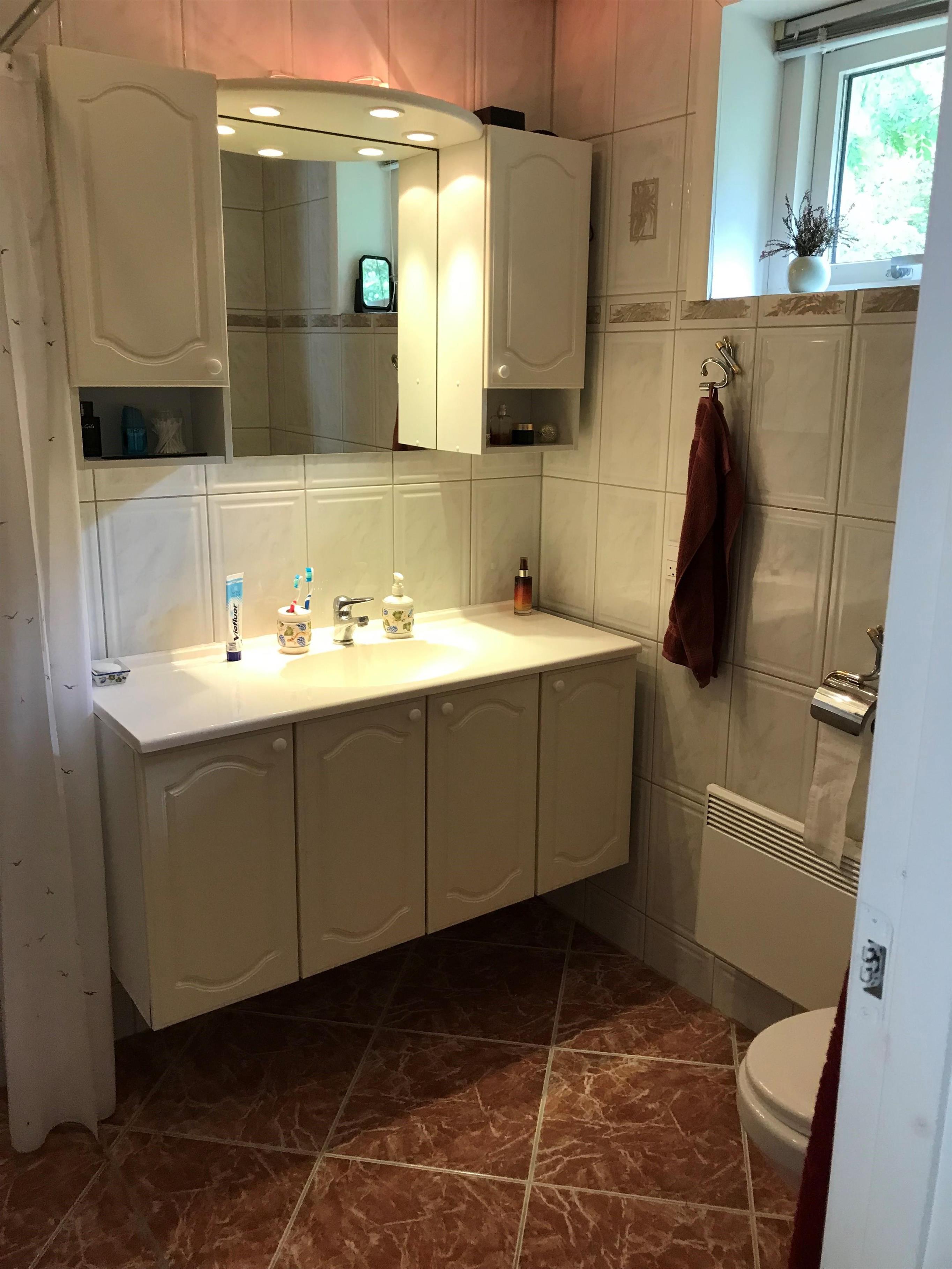 Huset har 2 badeværelser - et i hovedhuset og et i annekset med dobbeltseng. I begge badeværelser er der et toilet og brusebad. I det ene anneks er der også en vaskemaskine.