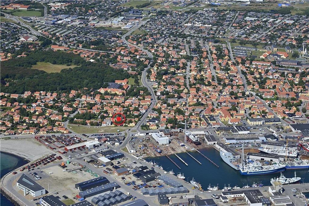 Huset ligger på samme grund som TV1404 og P-pladserne er fælles med denne