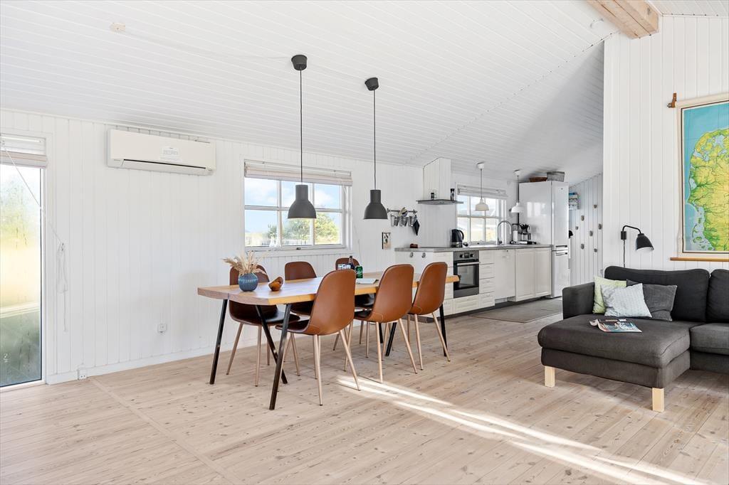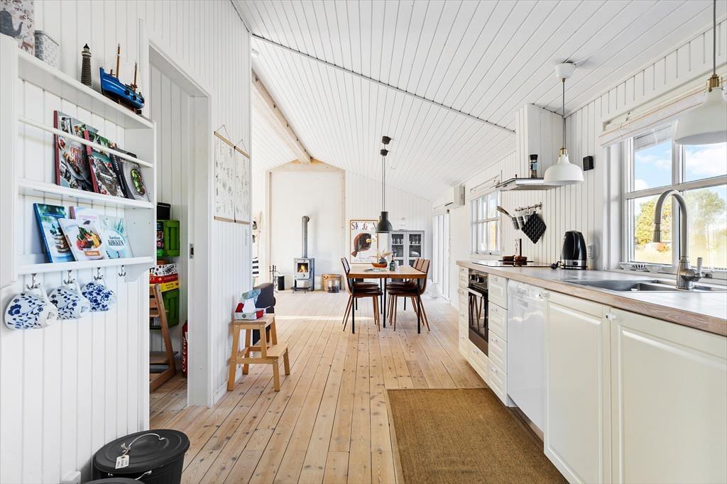I dette lyse og hyggeligt indrettede sommerhus på Søstjernevej 1 B får du de ideelle rammer for en afslappende ferie tæt på Skagen Strand og By. Her mødes moderne bekvemmeligheder som varmepumpe, wifi og en veludstyret køkkenafdeling med charmen fra en klassisk brændeovn, der spreder varme og hygge på kølige aftener. Forestil dig at samle familien i den indbydende stue efter en dag på stranden – lyden af træet, der knitrer i brændeovnen, mens I nyder en god film, brætspil eller blot hyggesnakker. Indretningen skaber en atmosfære af komfort og nærvær, der indbyder til at sænke tempoet og bare nyde ferien i fulde drag.