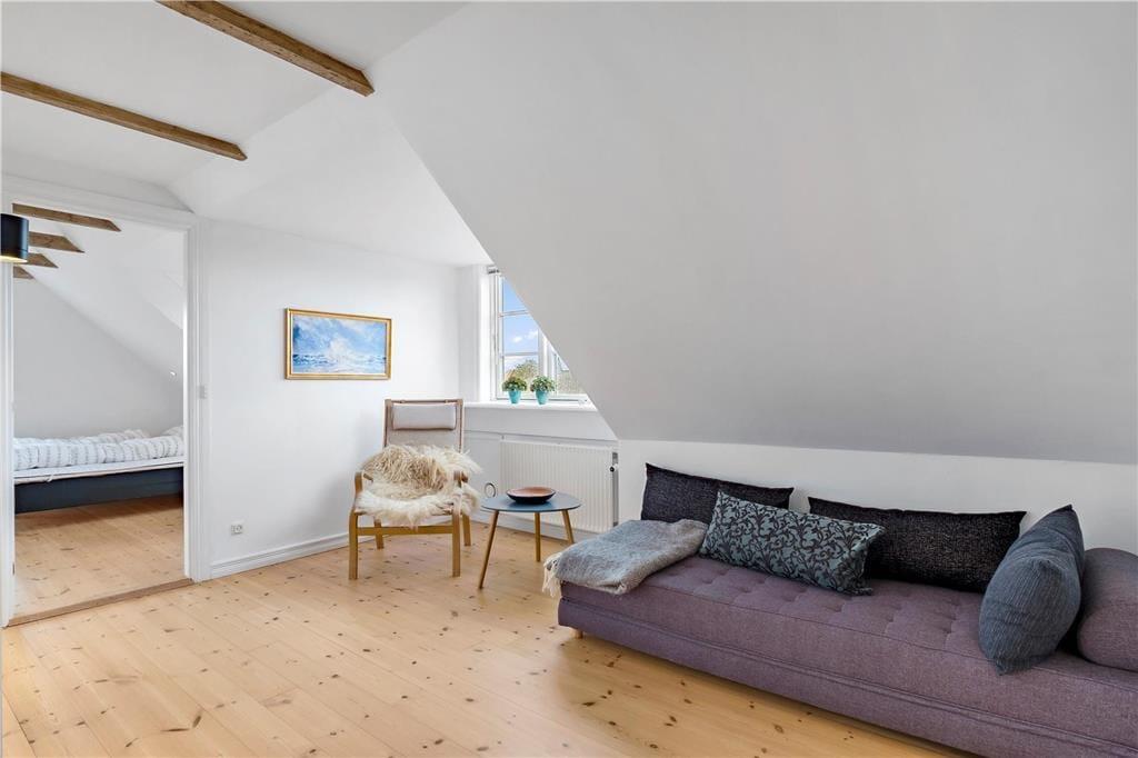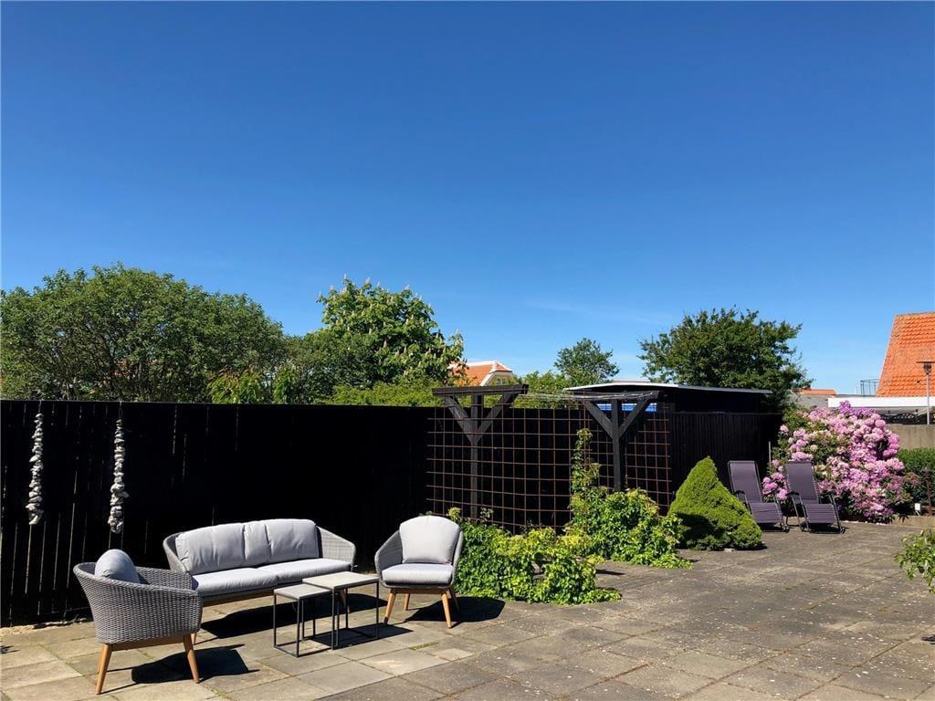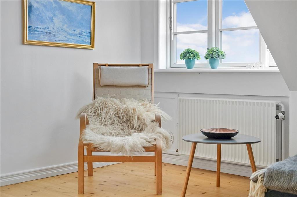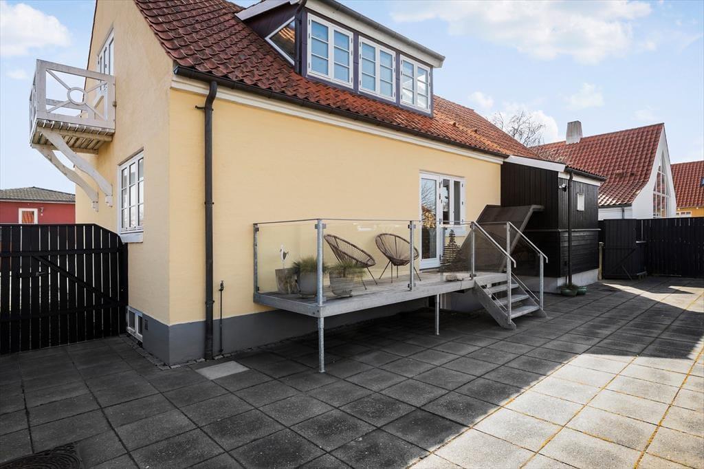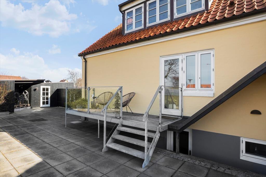 Fra opholdsstuen er der direkte udgang til en charmerende, lukket gårdhave – en grøn oase midt i byen, hvor du både kan finde sol og skygge i løbet af dagen. Terrassen er perfekt til feriens stille morgener med duften af friskbrygget kaffe, og om aftenen kan der dækkes op til grillmiddag under åben himmel. Det rolige og afskærmede gårdmiljø giver dig en fredelig pause fra byens summen og er det ideelle sted at læse en god bog, tage en lur i solen eller nyde et glas kølig hvidvin i skæret fra lanterner, når mørket falder på. De grønne planter og den diskrete beplantning skaber en atmosfære af ro og feriestemning – som et lille, privat fristed midt i Skagen.