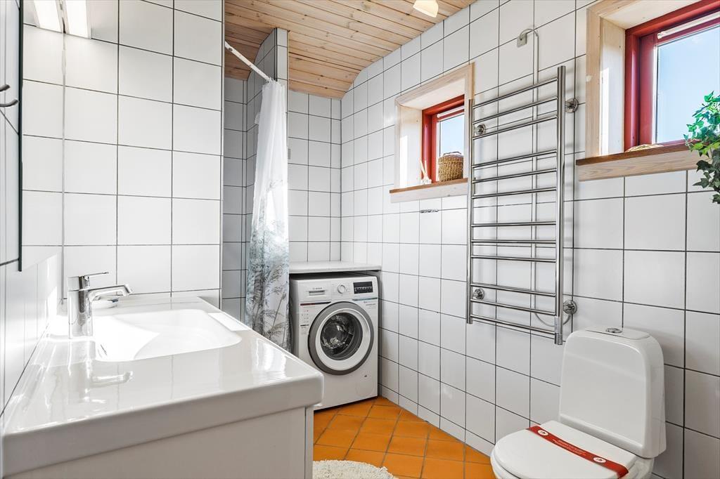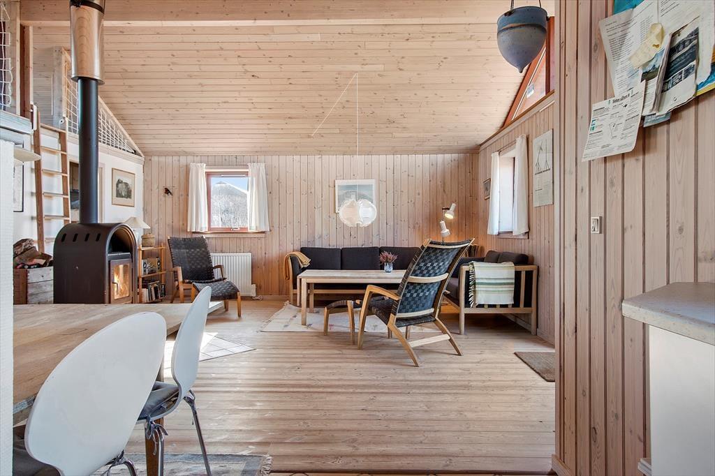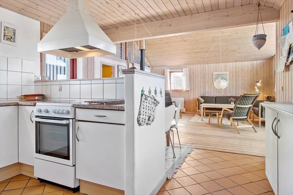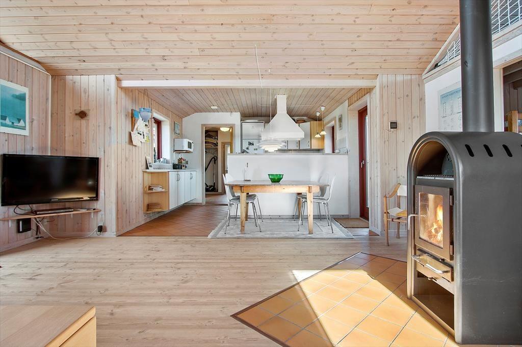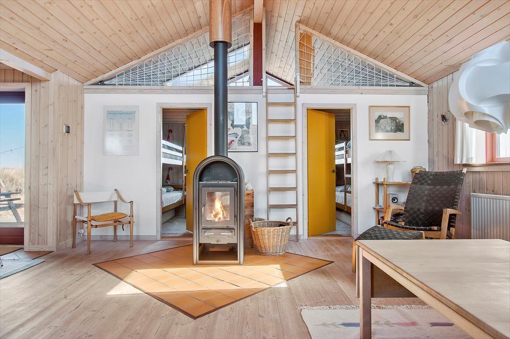 Sommerhuset emmer af klassisk sommerhuscharme, hvor både lys og luft spiller en central rolle. Den åbne forbindelse mellem køkken og stue skaber en dejlig rummelig atmosfære, hvor hele familien kan samles, hvad enten I er i gang med at lave mad, spille spil eller bare slappe af foran brændeovnen. Brændeovnen tilfører hygge og varme på de kølige sommeraftener, og den åbne stue giver udsigt til de omkringliggende grønne områder, hvor du kan høre fuglene synge i træerne. Et ekstra pift til ferieoplevelsen er den lille hems, hvor børnene kan finde et hyggeligt fristed til leg og afslapning.