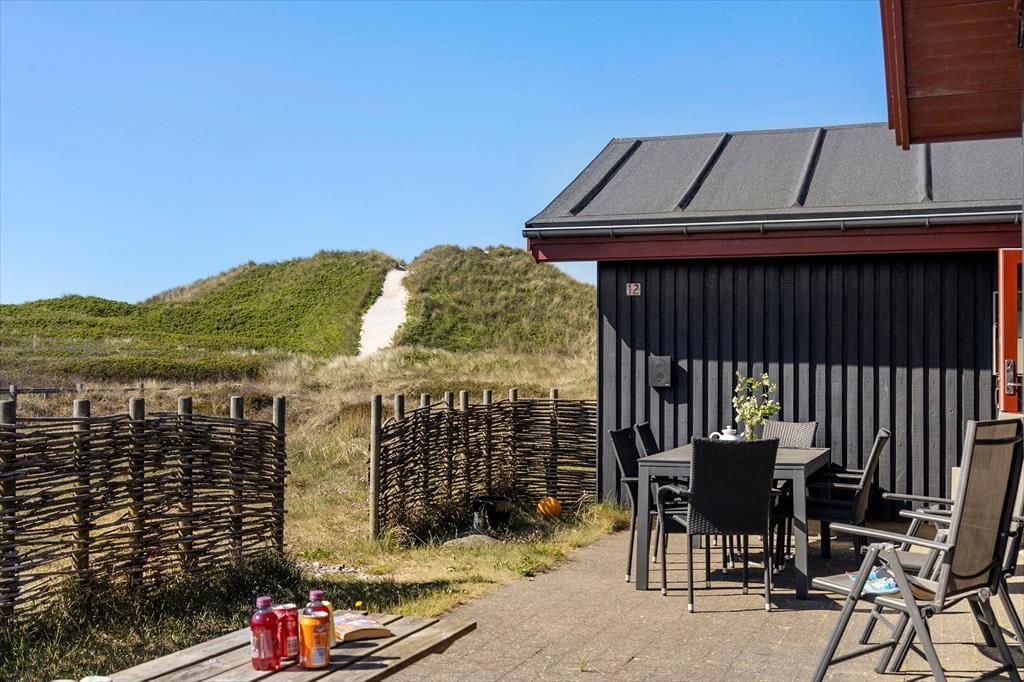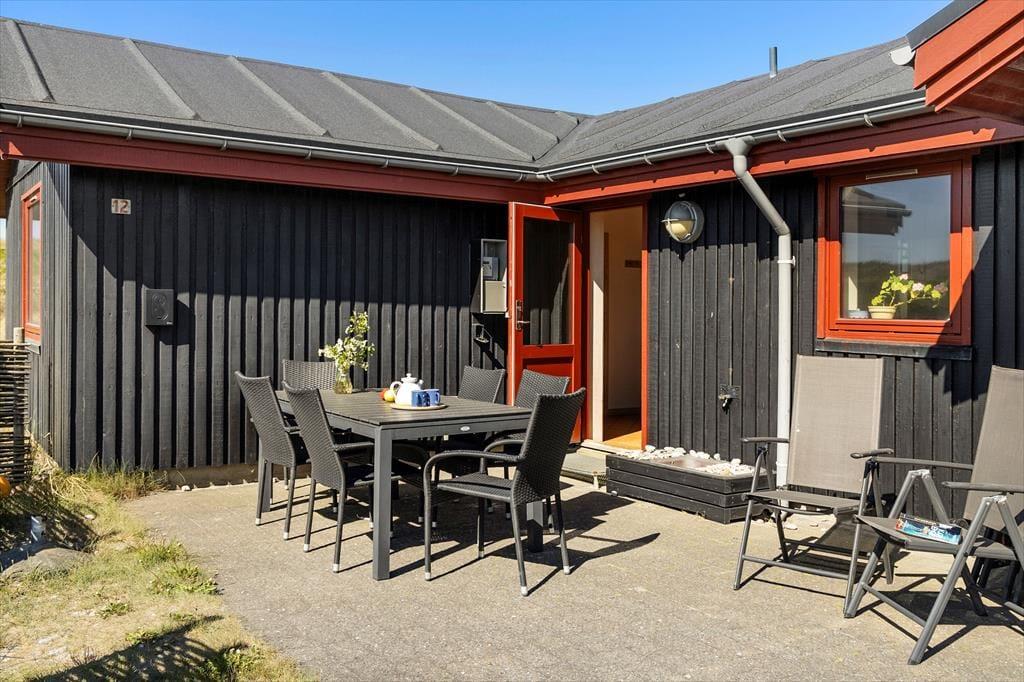 Sommerhuset tilbyder to dejlige terrasser, som gør det muligt at nyde solen fra morgen til aften. Den ene terrasse er perfekt til en stille morgenkaffe, mens den anden er ideel til middag og grillhygge om aftenen. Begge terrasser giver plads til at strække benene, slappe af i liggestole og nyde den friske luft, mens du hører bølgerne og fornemmer den salte havluft. Den store græsplæne omkring huset giver plads til både afslapning og leg – her kan børnene løbe rundt og udfolde sig, mens de voksne nyder de rolige omgivelser. Det er svært ikke at føle sig hjemme her, hvor alt inviterer til afslapning og samvær.