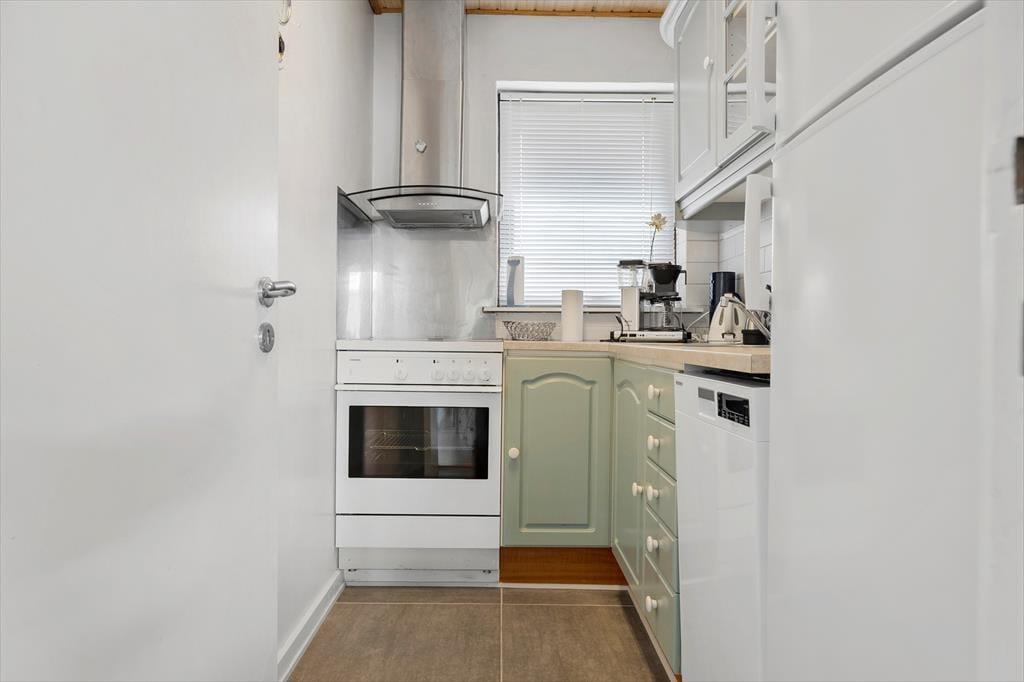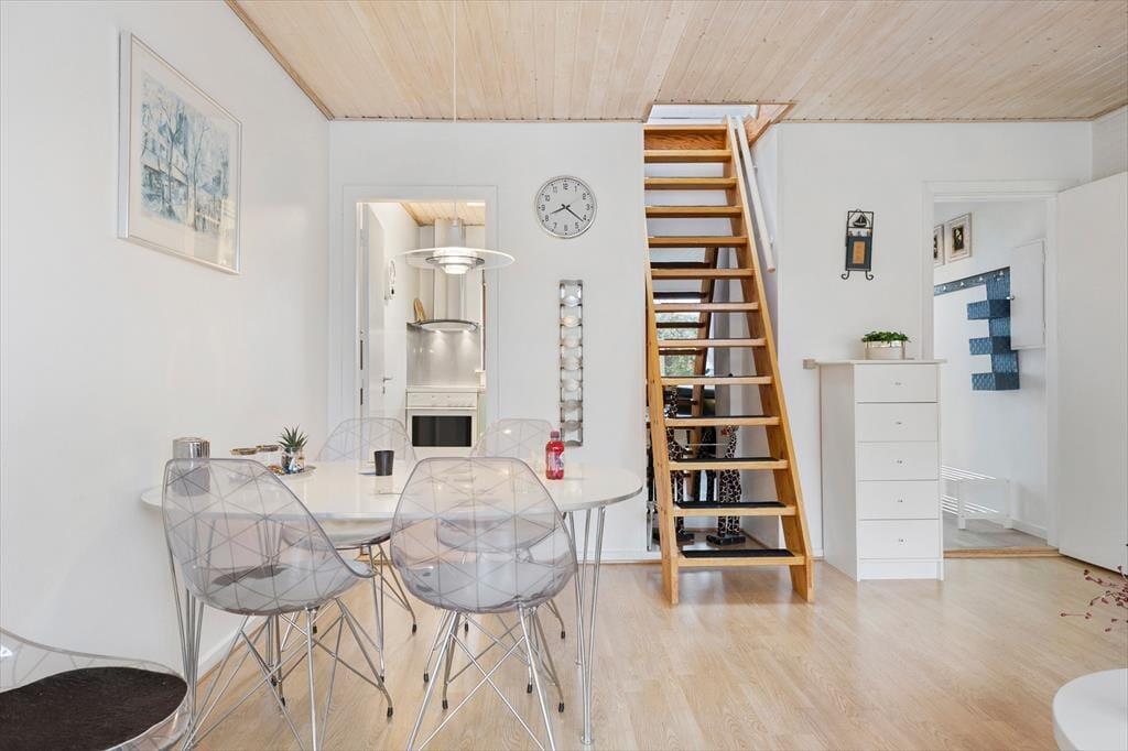 Inde bag ejendommens røde murstensmure venter der dig en pæn og indbydende feriebolig, der kan rumme op til fire personer. Bemærk, at for at komme op til de to soveværelser, skal du tage en stejl trappe fra stuen, og du kan også notere dig, at der er en skillevæg mellem de to soverum. Lejligheden passer med andre ord bedst til folk, der er godt til bens og har det fint med at bo nogenlunde tæt på hinanden. Stueetagen byder på et veludstyret køkken og et brusebadeværelse, der stort set er holdt helt i hvidt. Sidst, men ikke mindst, er der stuen, som er et dejligt opholdsrum med spisebord og hjørnesofa. Her kan du hygge dig i stor stil med at spille kort, læse bøger, se tv eller bare hyggesnakke med dine kære – når altså ikke solen skinner så smukt, at du bliver lokket ud på den tilstødende terrasse.