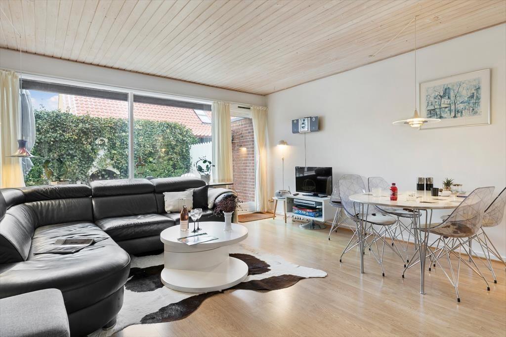 Lejlighedens vestvendte terrasse er skærmet af murværk og hegn til alle sider, så det er en helt lukket gård med en rolig atmosfære. Solforholdene er gode, og fordi udearealet vender ind mod naboejendommen, føles det særdeles ugeneret og fredfyldt at sidde her – så du vil måske ligefrem glemme, at du befinder dig lige midt i byen, når du drikker eftermiddagskaffe under parasollen eller griller aftensmaden med familien, når dagen går på hæld. Der er mulighed for at parkere ved ejendommen, og på grund af den centrale adresse kan bilen oplagt holde her en stor del af ferien.