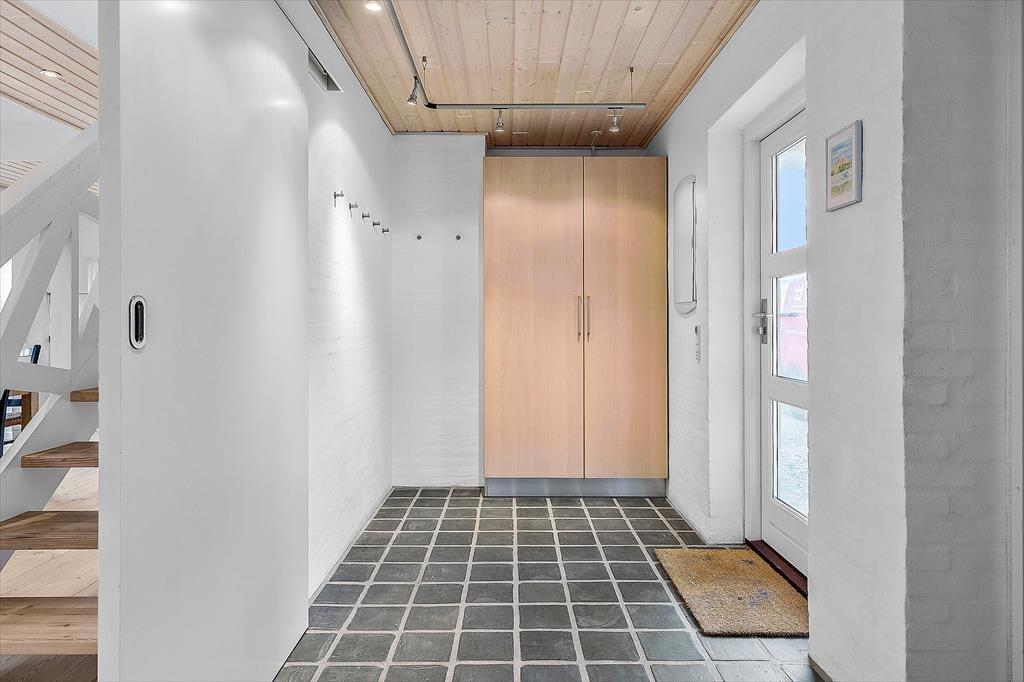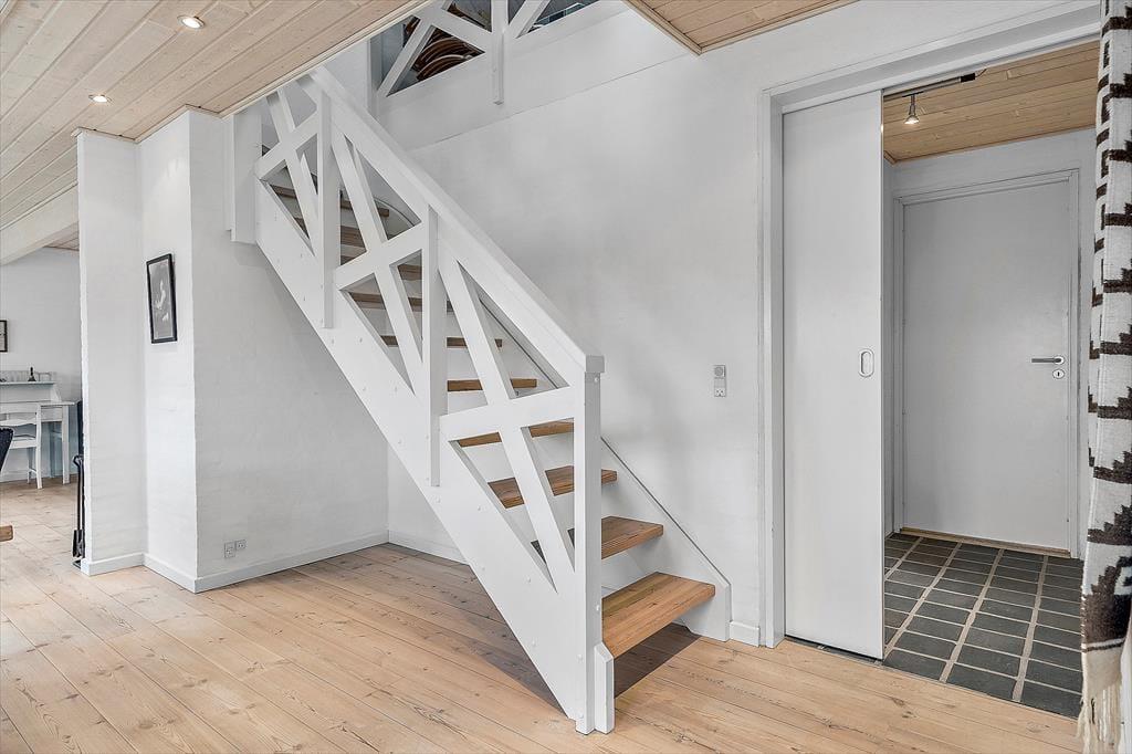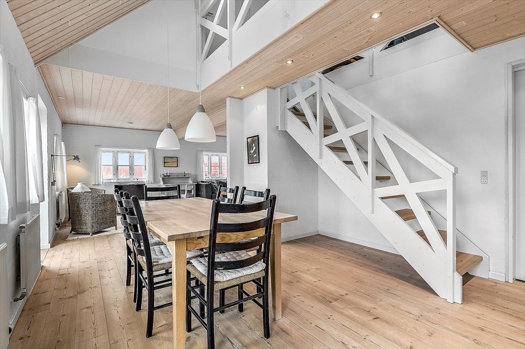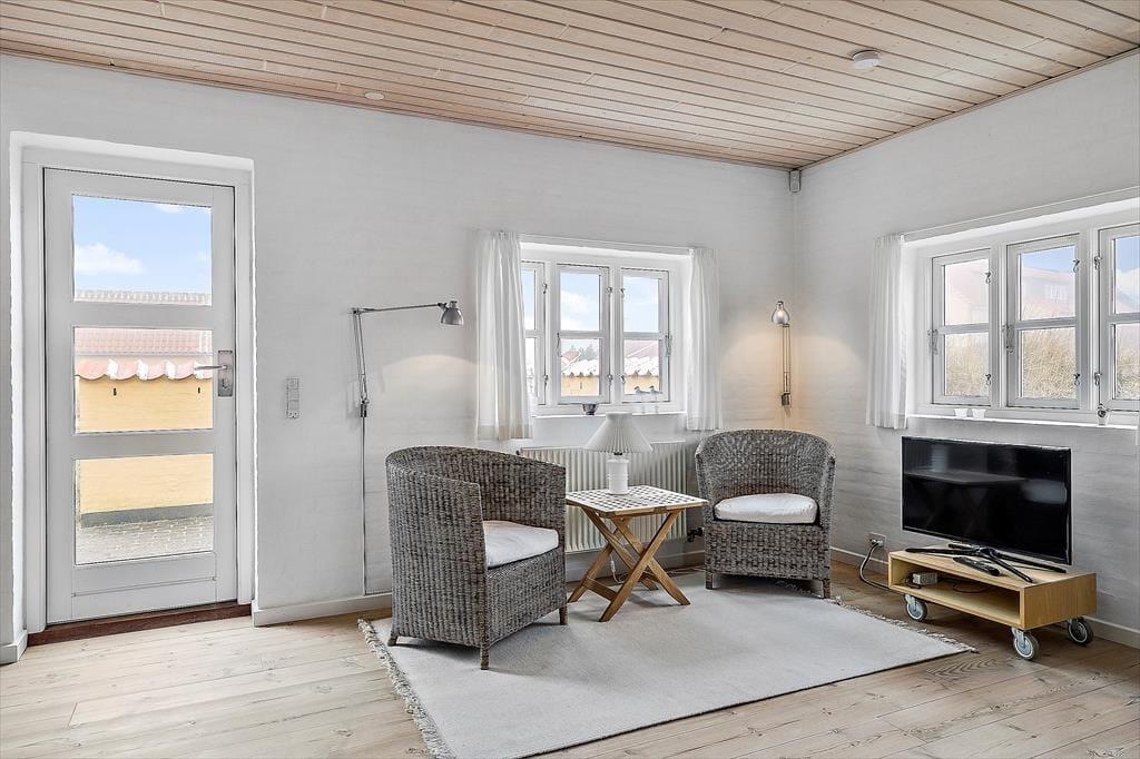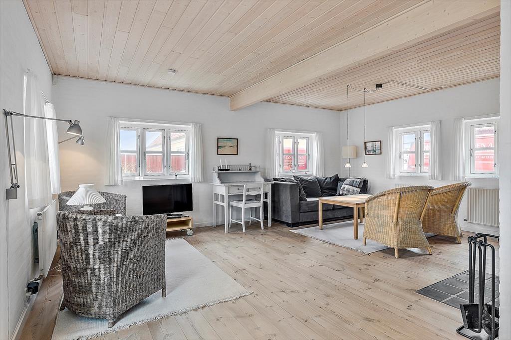 Når du træder ind i feriehuset, bliver du mødt af en indbydende atmosfære med lys og en rummelig indretning, der gør det let at slappe af. Den gennemtænkte planløsning giver plads til både samvær og hygge, og stuen bliver det naturlige samlingspunkt for familien. Her kan du nyde varmen fra brændeovnen på kølige aftener og slappe af med en god bog eller film. Køkkenet er praktisk og åbent, så du let kan være en del af samtalen, mens du forbereder måltider. Huset har også komfortable soveværelser, hvor du kan få en god nats søvn efter en lang dag ved stranden eller på opdagelse i området.