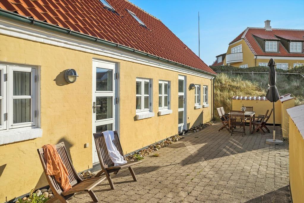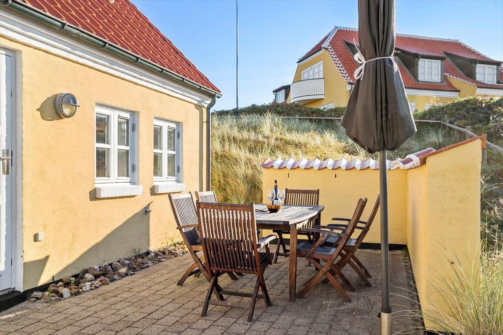 Feriehuset byder på en dejlig terrasse, hvor du kan tilbringe lange dage i det fri. Her er masser af plads til at slappe af med en god bog, tage en pause i liggestolene eller grille aftensmaden, mens du nyder den friske luft. Den lukkede vej giver ekstra privatliv og ro, og med Gl. Skagen Strand kun 100 meter væk, er det nemt at tage en dukkert i havet eller gå en tur langs kysten. Terrassen er ideel til at starte dagen med en morgenkaffe og afslutte den med en grillmiddag under den åbne himmel.