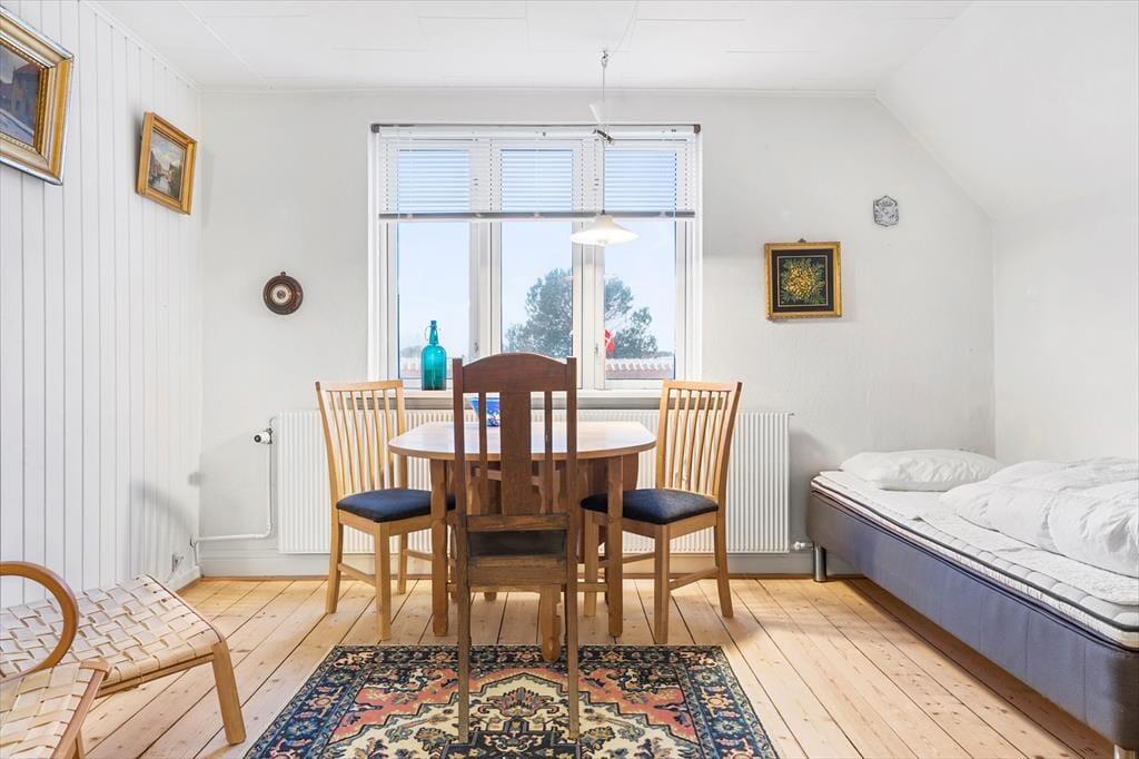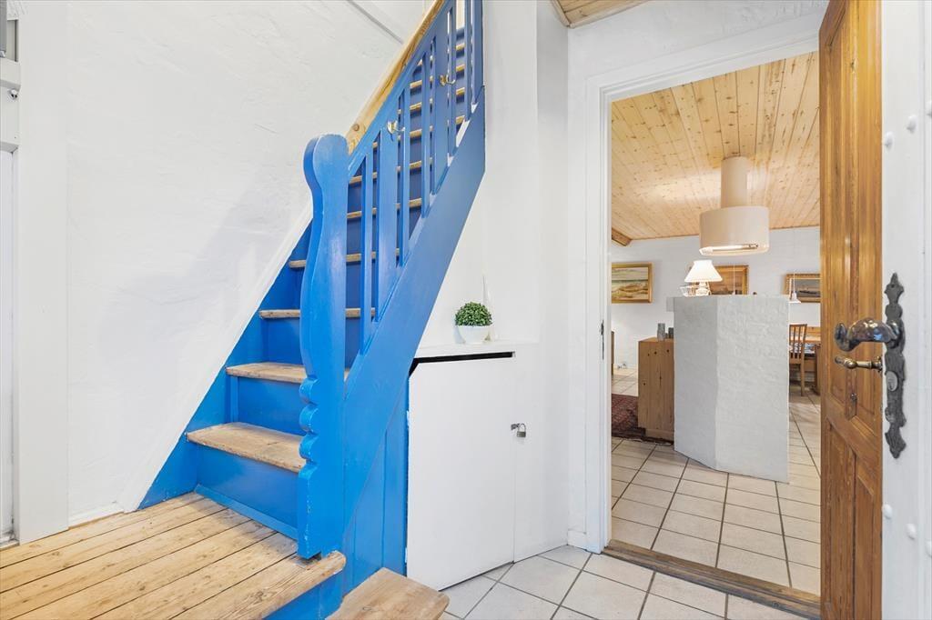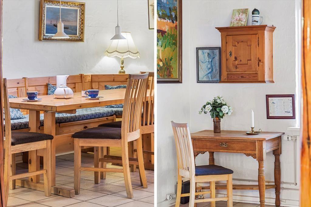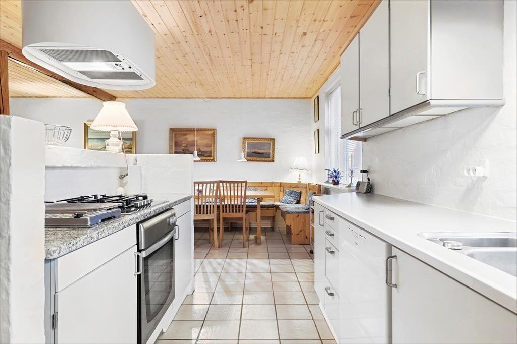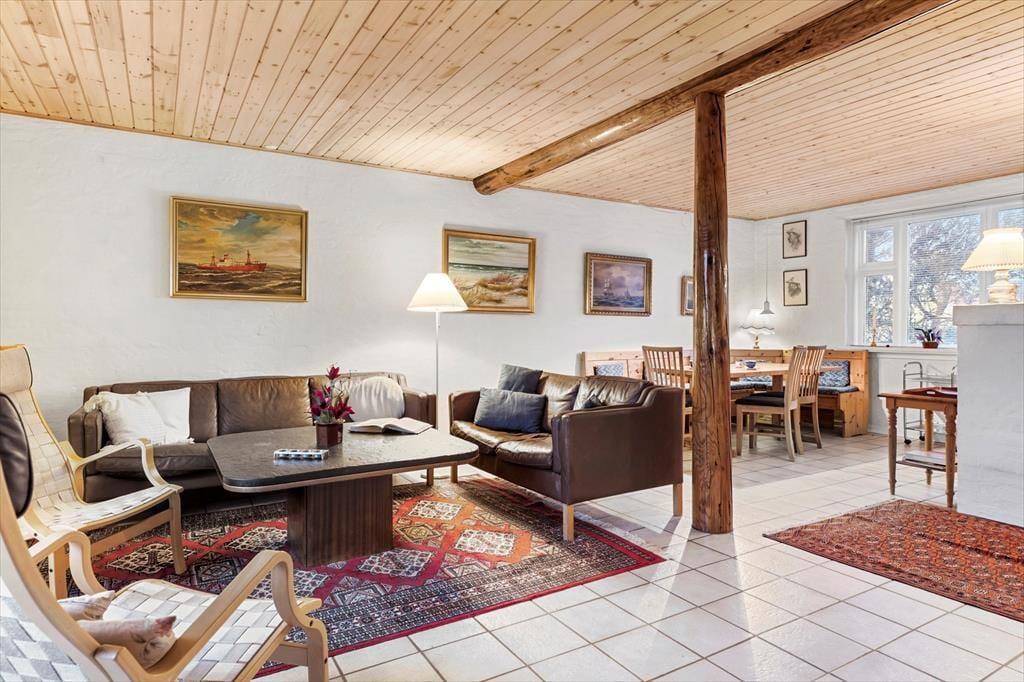 Indenfor mødes du af en lys og varm atmosfære, hvor åben planløsning mellem stue og køkken skaber et naturligt samlingspunkt. Her kan I snakke på tværs af rummet, mens dagens måltid bliver til, eller nyde en stille stund med en kop kaffe ved vinduet. Indretningen er hyggelig og fuld af små detaljer, der minder dig om, at du befinder dig i hjertet af Skagen – fra farvevalg til materialer, der matcher områdets traditionsrige byggestil. Fordelt på to etager er der god plads til hele selskabet, hvad enten I samles i stuen til en filmaften eller fordeler jer i husets værelser for lidt privatliv. Når mørket falder på, og byen udenfor stilner af, kan du høre havets sagte brusen i det fjerne og mærke ferieroen brede sig.