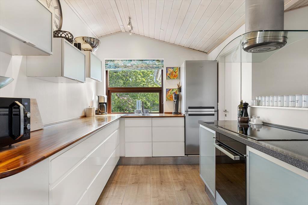Fra Carl Johansens Vej har I kun 15 minutters gang til hjertet af Skagen, hvor byens farverige huse, gallerier, hyggelige restauranter og det historiske havnemiljø venter på jer. I kan nyde en frokost med udsigt over havet, tage på udflugt til Grenen, hvor Skagerrak og Kattegat mødes, eller besøge kunstmuseerne, der fortæller historien om Skagensmalerne. Når I vender hjem efter dagens eventyr, er det en fornøjelse at gå ad de stille villaveje tilbage til huset – måske med en is i hånden og solen i ryggen. Området omkring huset er præget af grønne omgivelser og giver en rolig kontrast til byens puls. Og uanset om I er til natur, kunst, shopping eller strandliv, har Skagen det hele – og det ligger lige om hjørnet.