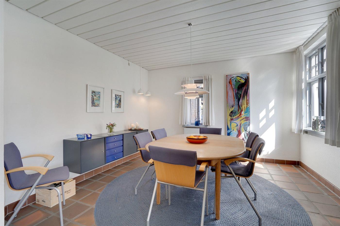 Køkkenet er udstyret med 1 køleskab. Der er 4 keramiske kogeplader, bageovn, varmluftovn, mikrobølgeovn samt opvaskemaskine.