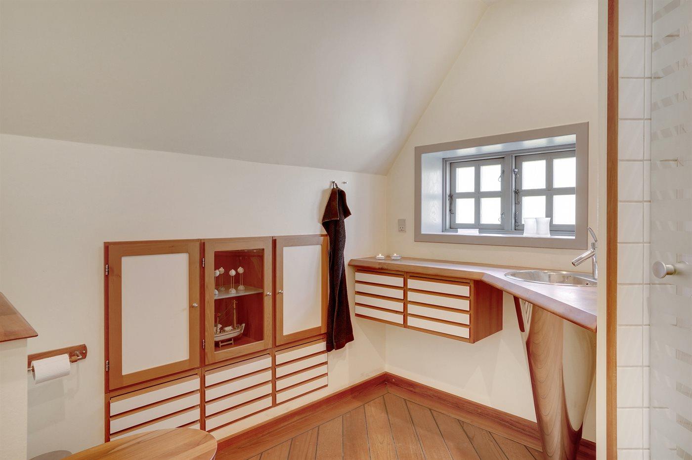 Der er 2 badeværelser med bruseniche og 2 toiletter. Der er gulvvarme på 1 badeværelse.