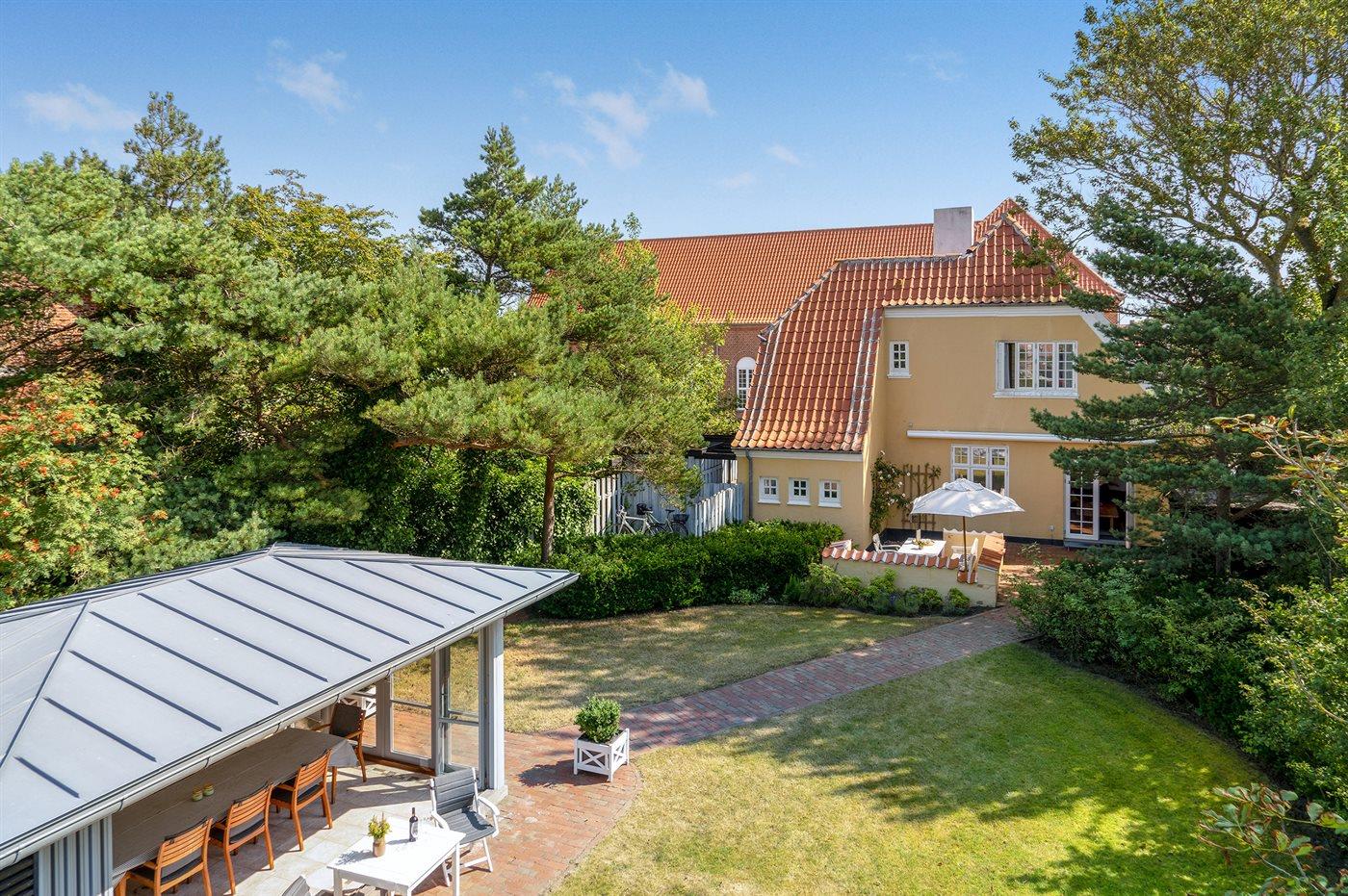 Flot Skagenhus med stor have nær centrum og havet, ideelt til familieferie.