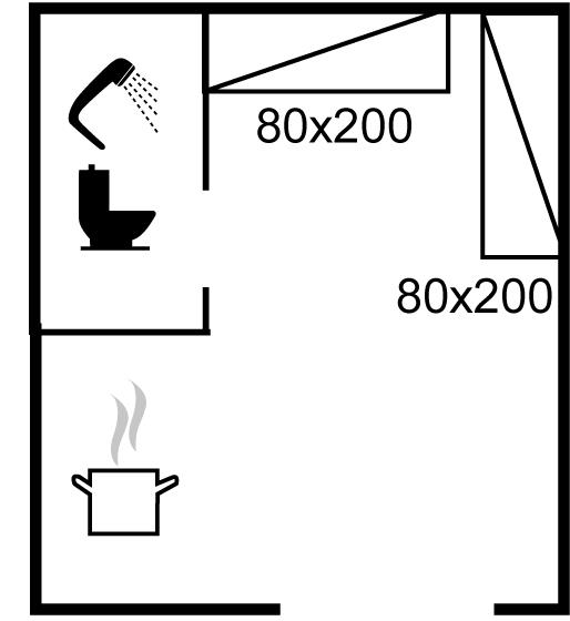 Sovepladserne fordeler sig på: 2 sovepladser i enkeltsenge.