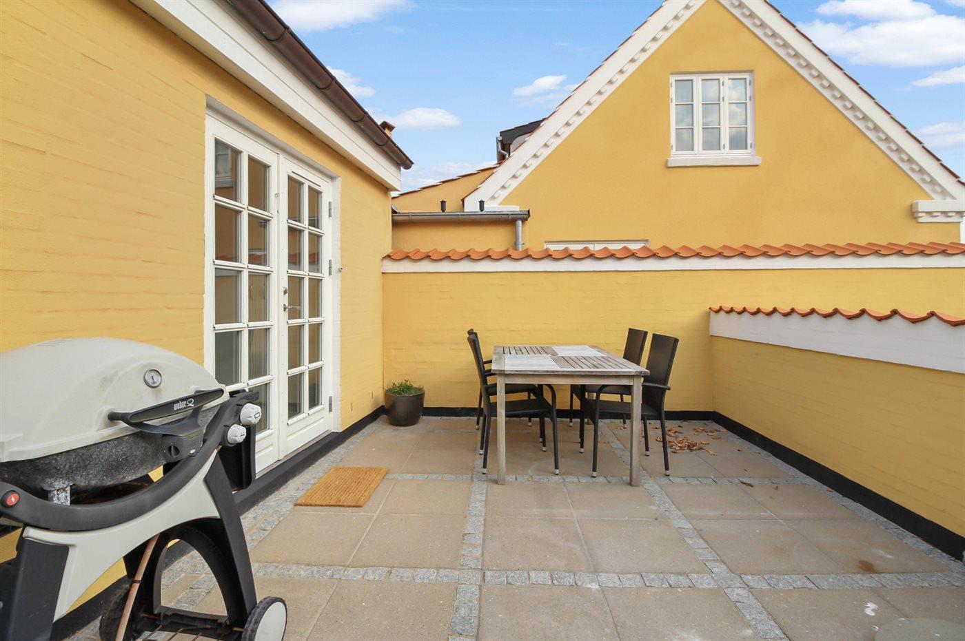 Hyggelig ferielejlighed i Skagen midtby nær centrum, havn og strand med fælles gårdhave og terrasse.