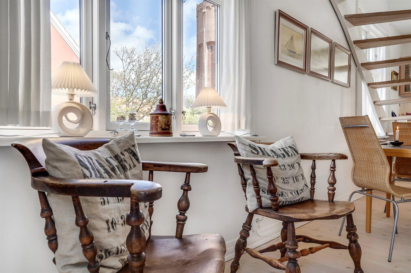 Skøn og lyst indrettet ferielejlighed i klassisk skagenshus beliggende centralt i Skagen tæt på centrum, havn, strand og byens mange seværdigheder.