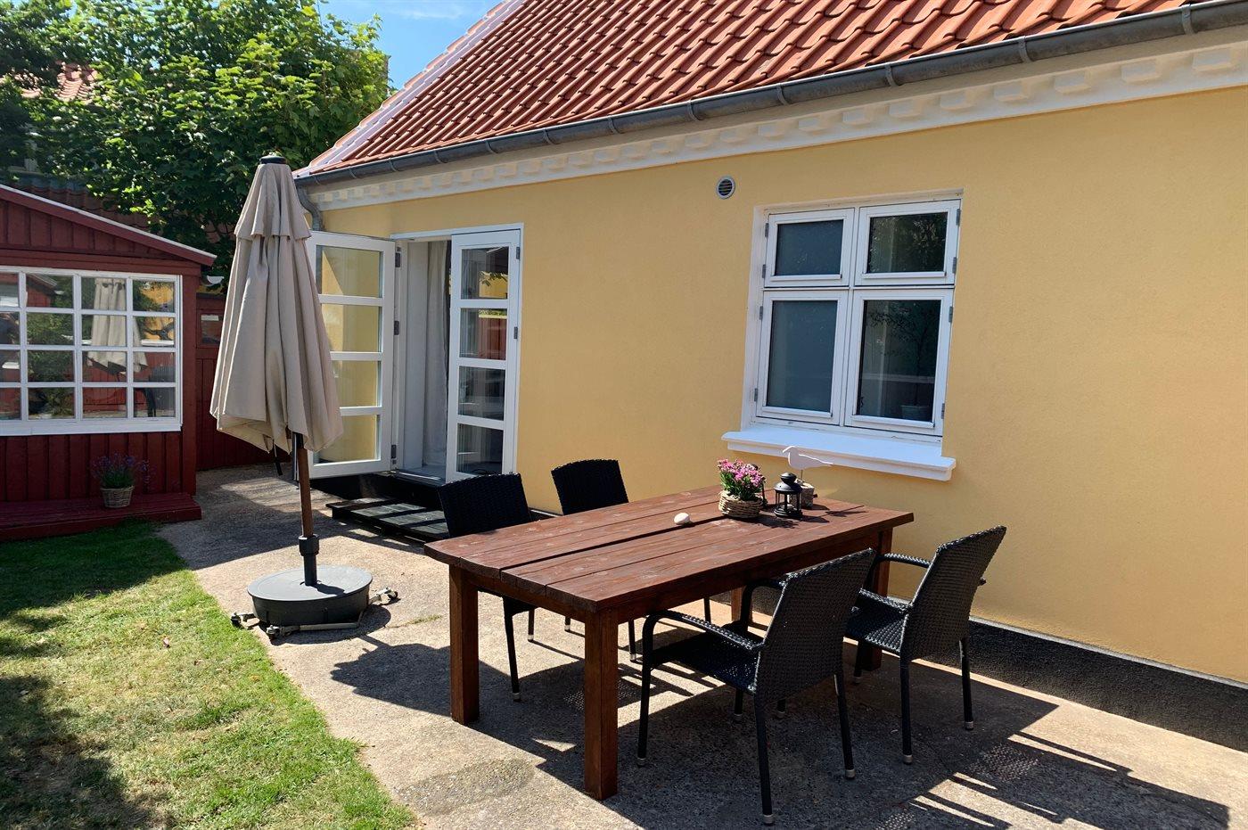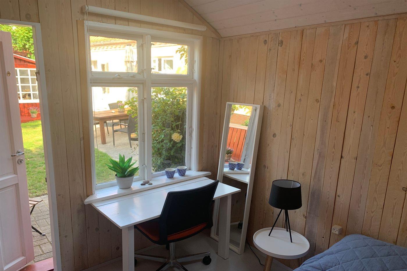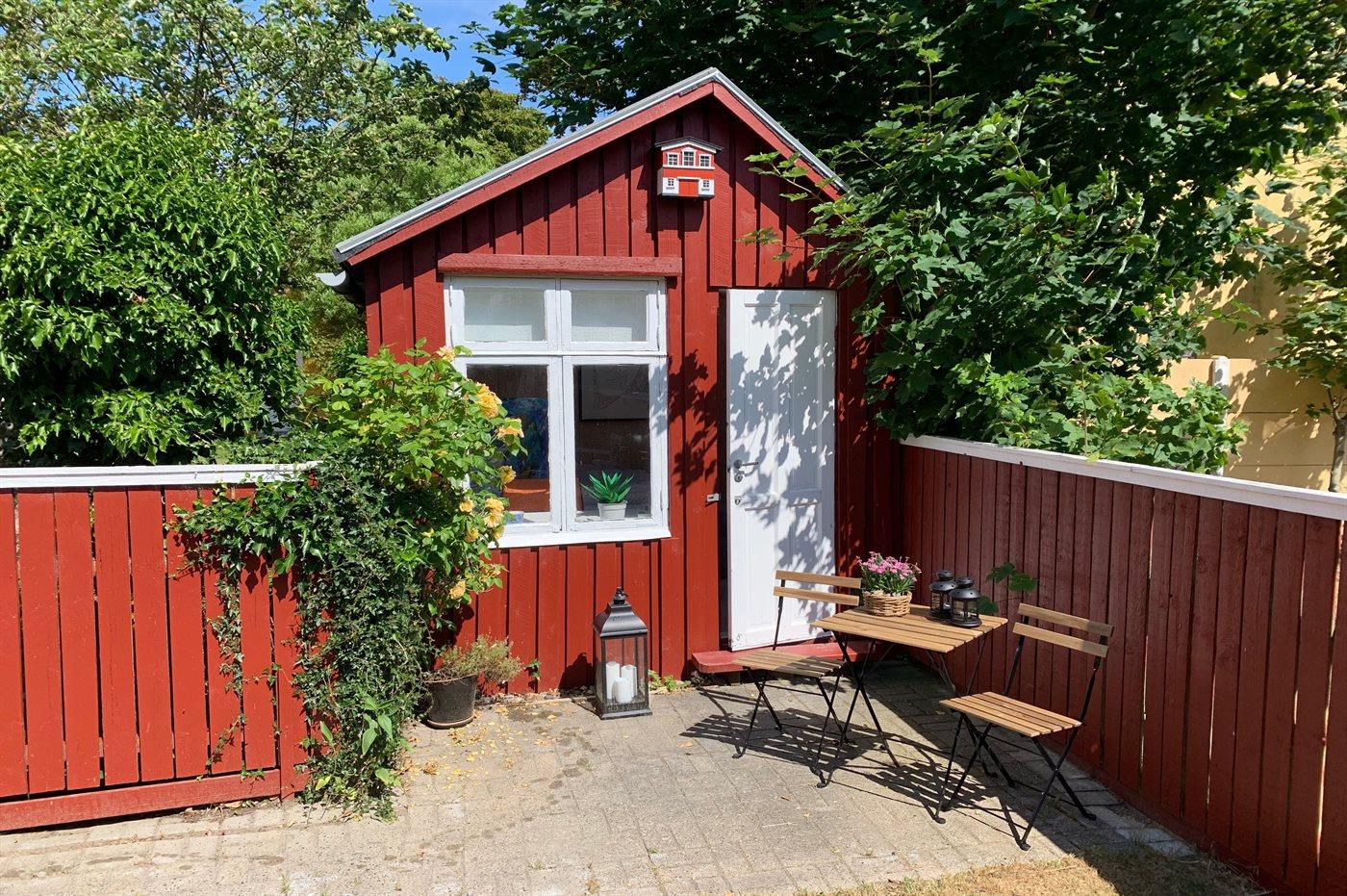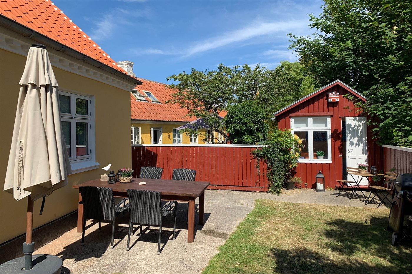 Ferieboligen er beliggende på en indhegnet havegrund. Til ferieboligen hører en skøn og ugenert gårdhave på 40 m2, hvor der er sol det meste af dagen. Til huset hører 2 annekser – det ene indrettet med 2 ekstra sovepladser og det andet er indrettet som hyggestue.
