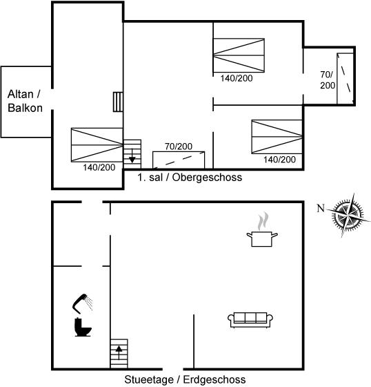 Der er i alt 3 soveværelser. Sovepladserne fordeler sig på: 6 sovepladser i dobbeltsenge. 2 sovepladser i sovesofa (enkelt). Derudover er der 1 stk. barneseng.