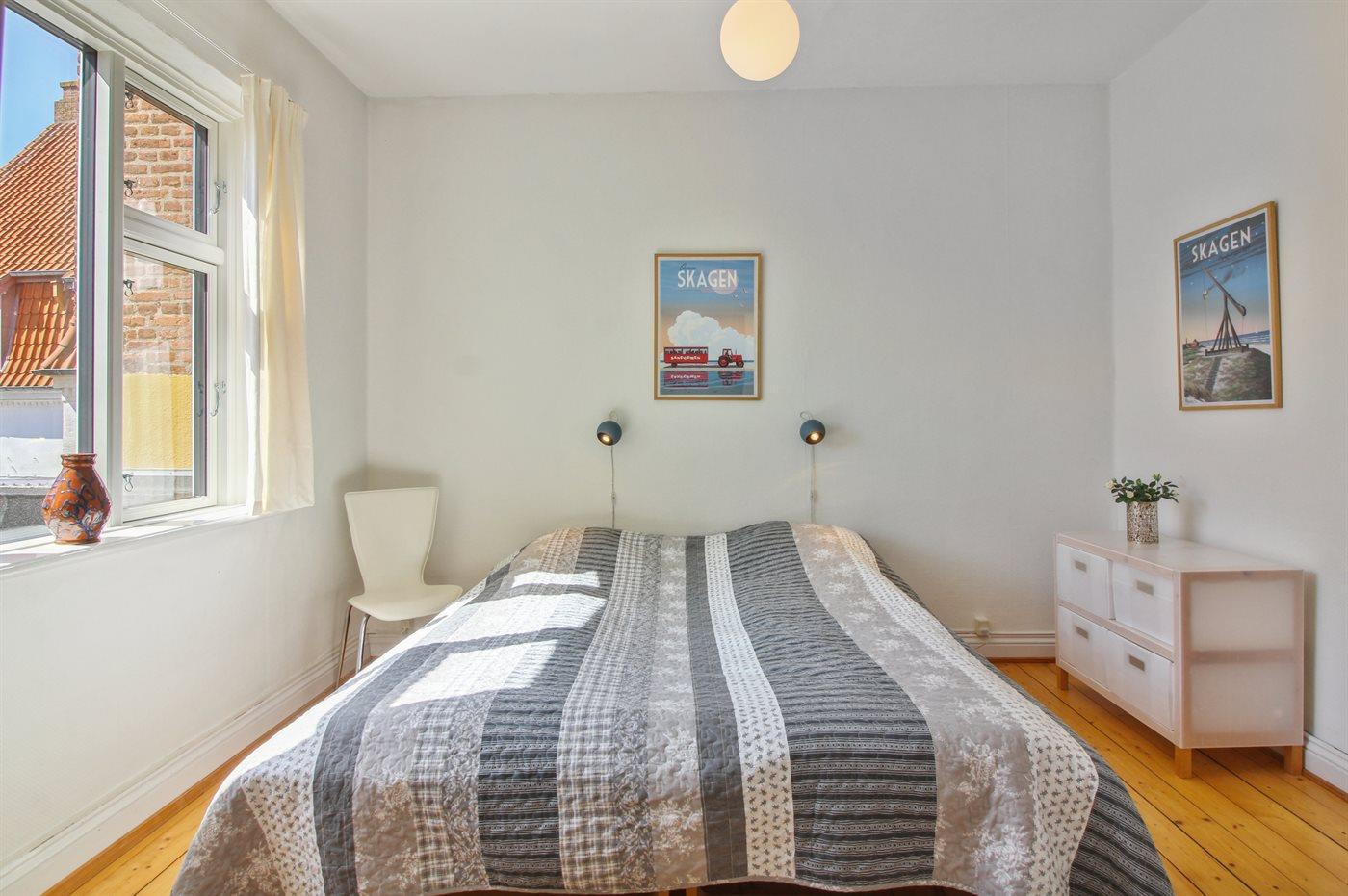 Fantastisk centralt beliggende ferielejlighed på 1. sal i et charmerende hus i hjertet af Skagen. Der er adgang til en lukket gårdhave med havemøbler, hvor man kan nyde solen. Ferielejligheden ligger lige ud til gågaden med butikker og caféer, og i gåafstand til mange af Skagens attraktioner, blandt andet Skagen Sønderstrand, Skagens Museum og Skagen Havn.