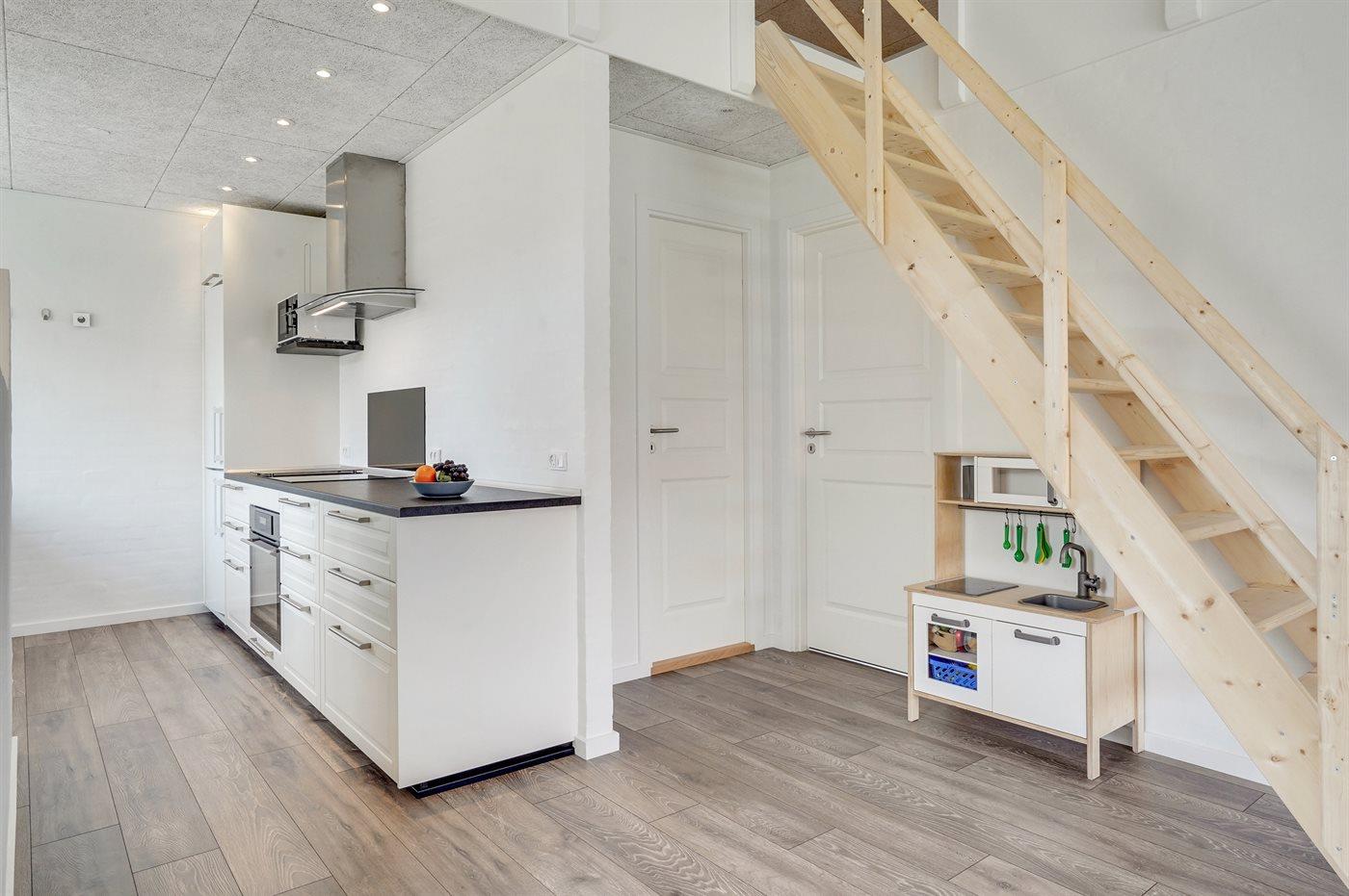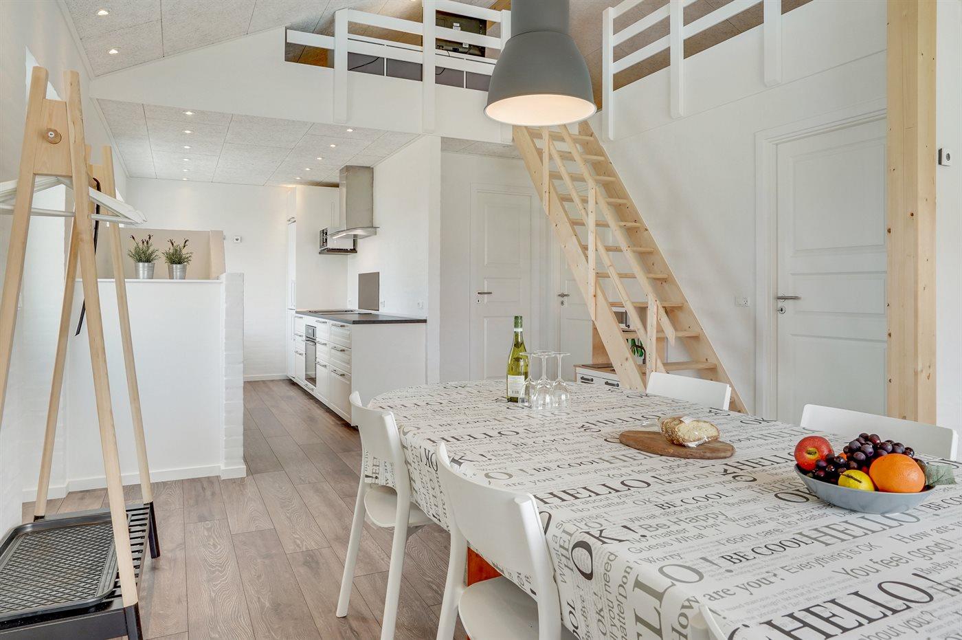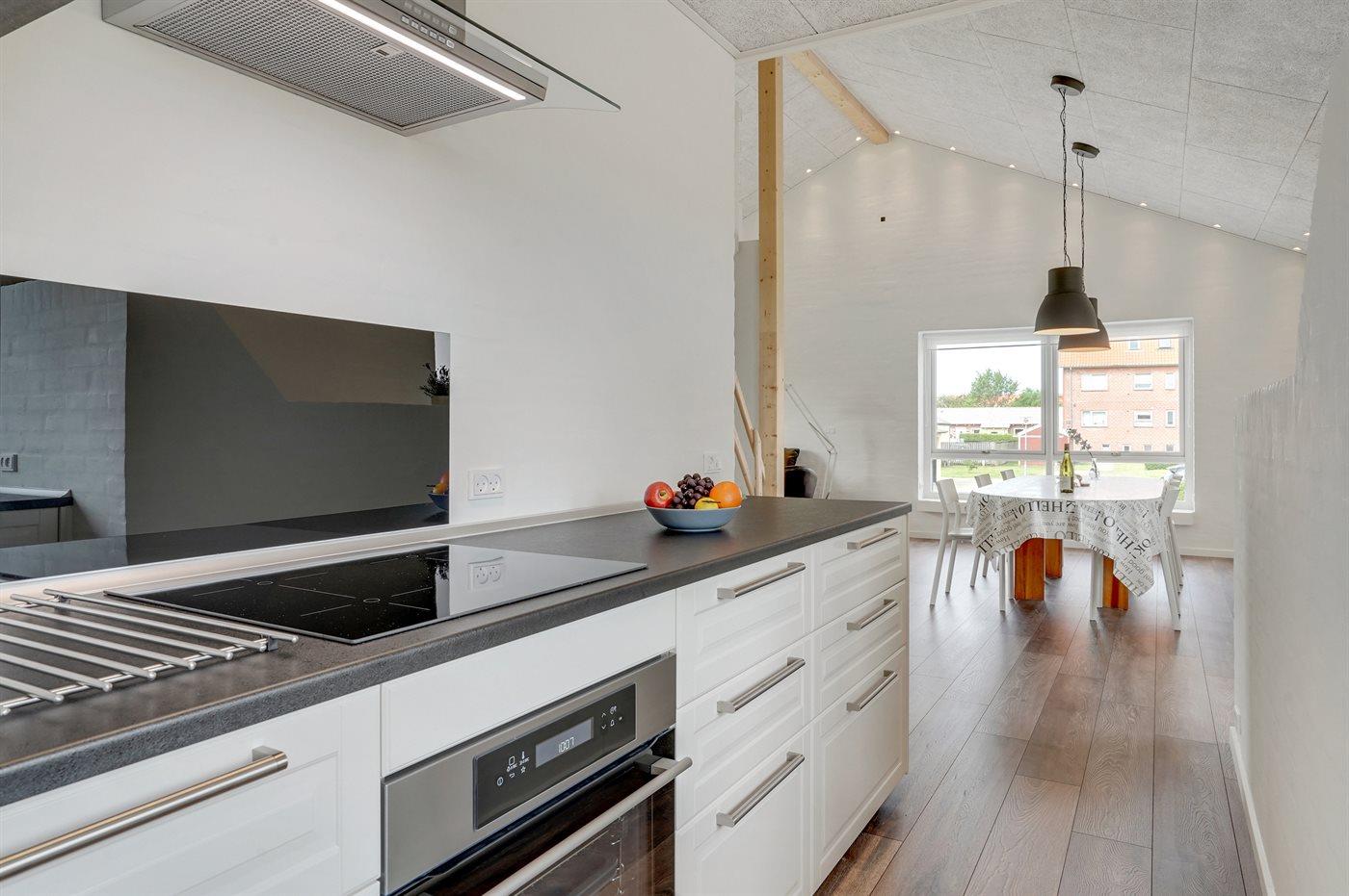 Køkkenet er udstyret med 1 køleskab. Der er 4 induktionskogeplader, varmluftovn, mikrobølgeovn samt opvaskemaskine.