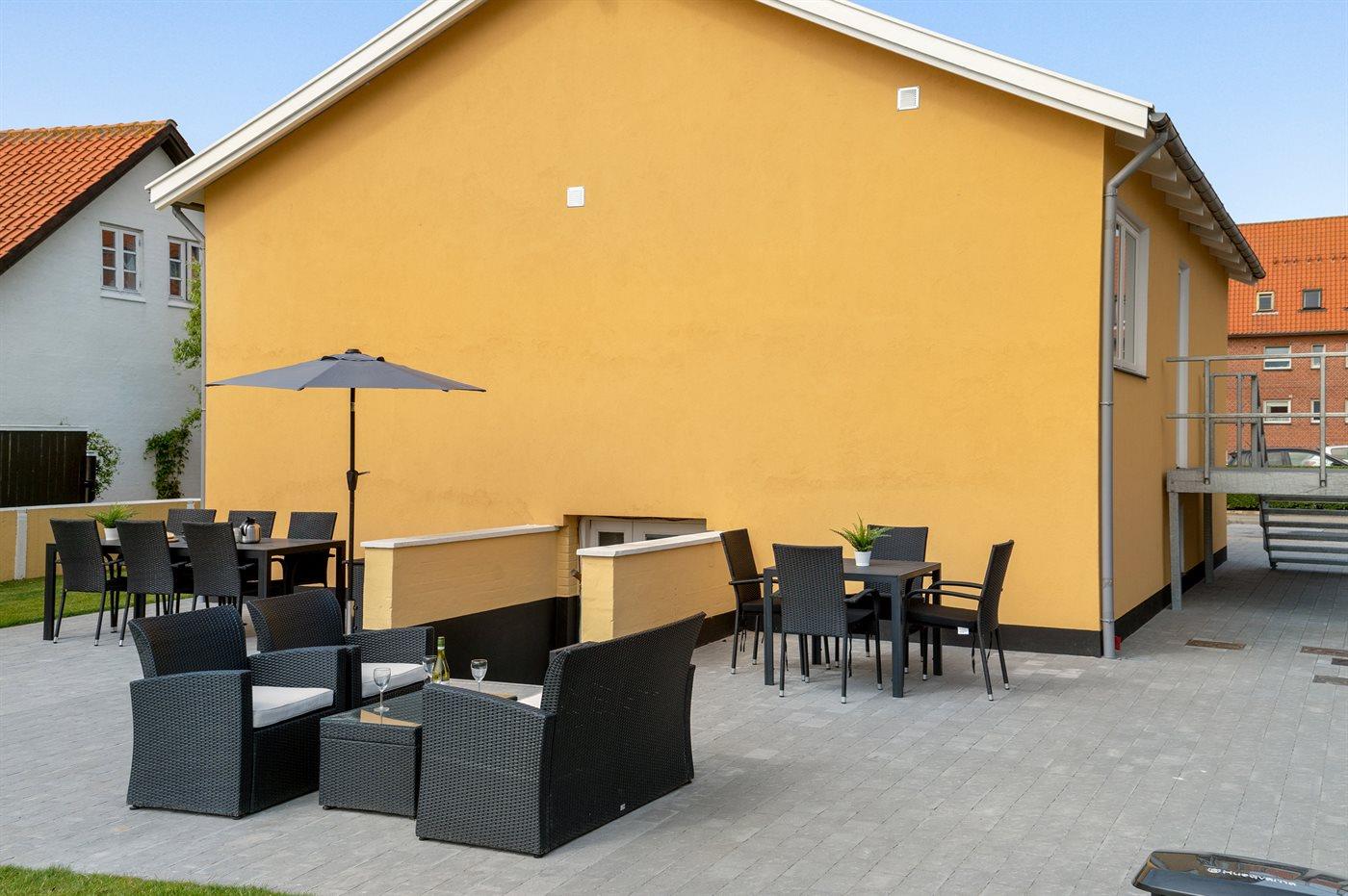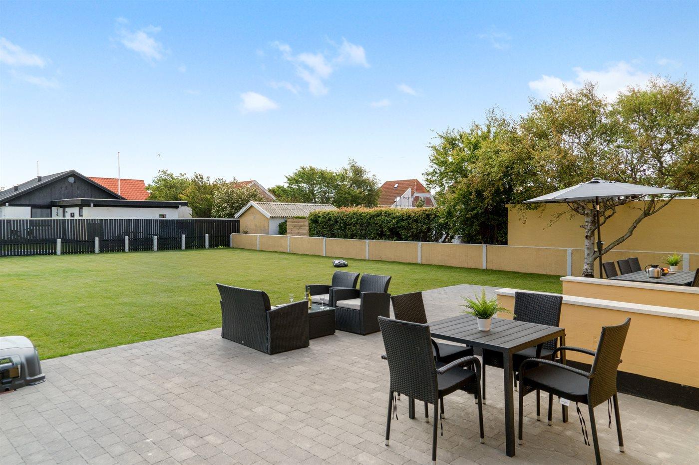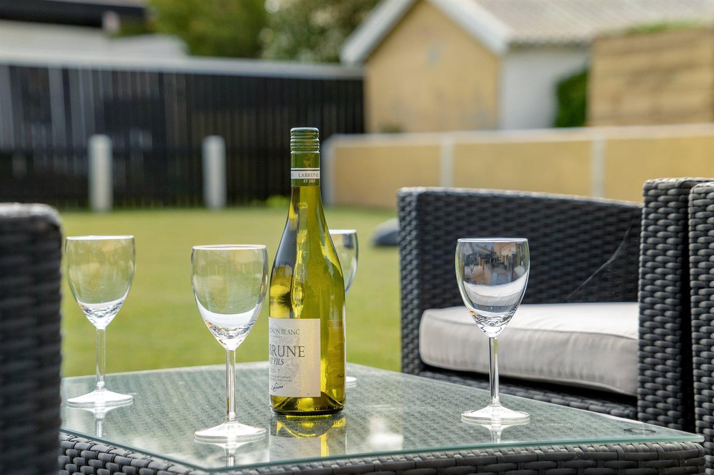 Ferieboligen er beliggende på en 750 m² stor havegrund. Der er 1100 m til havet. Nærmeste forretning er beliggende i en afstand af 50 m. Til ferieboligen hører 68 m² terrasseareal. Gynge. Der er installeret stik til opladning af elbil. Parkering ved ferieboligen.