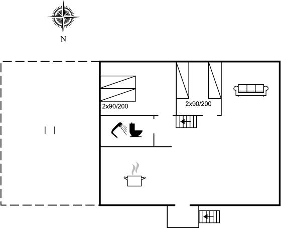 Der er i alt 2 soveværelser. Sovepladserne fordeler sig på: 6 sovepladser i enkeltsenge. 2 af disse sovepladser befinder sig på husets hems. Derudover er der 1 stk. barneseng.