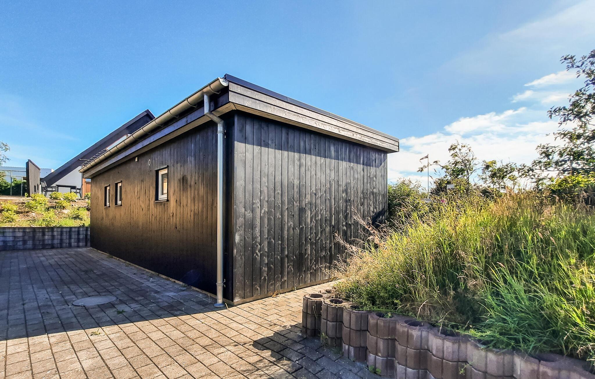 Hyggeligt træsommerhus nær Skagen Strand med terrasse og have, perfekt til en afslappende ferie tæt på vand og by.