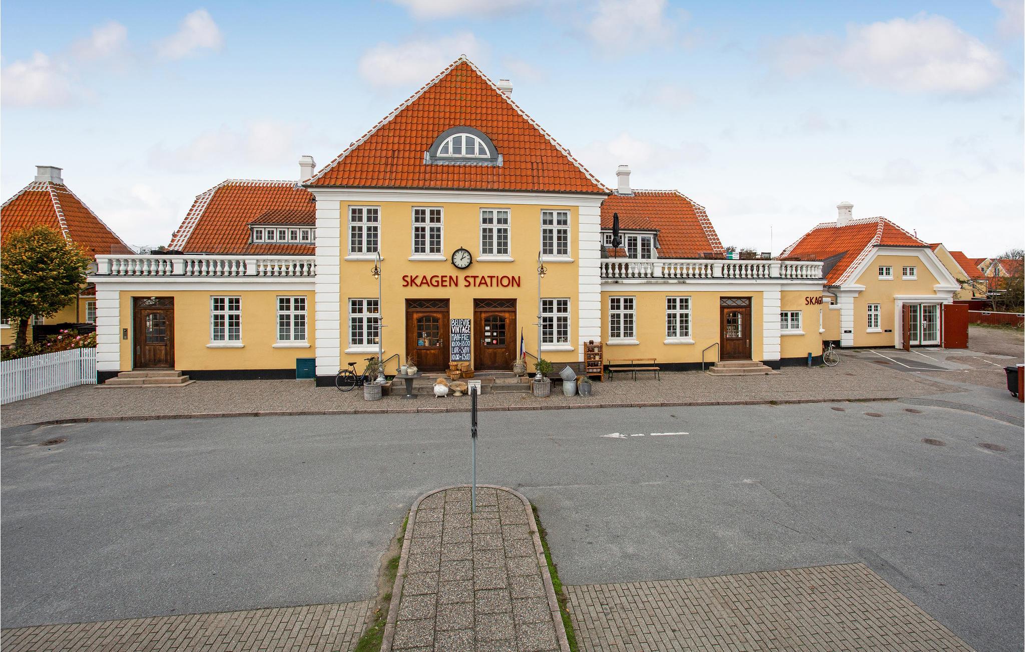 I hjertet af byen ligger dette klassiske, gule skagenhus tæt ved togstationen. Bygningen er opført i 1919 og tegnet af arkitekt Ulrik Plesner, og mens udtrykket er bevaret, er der samtidig lavet lækre, moderne tilføjelser.