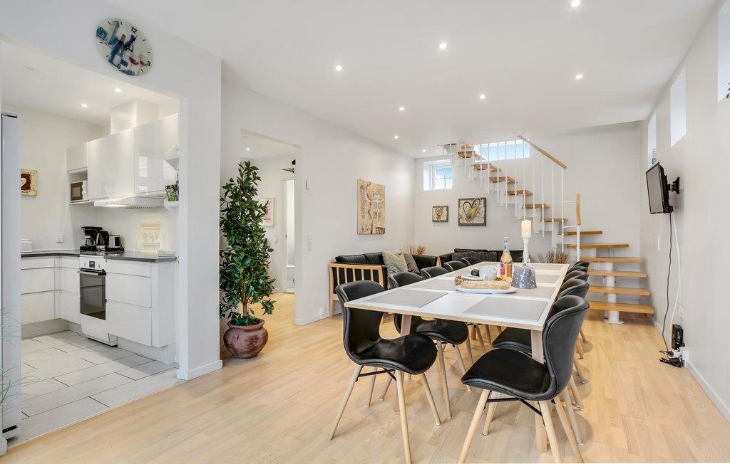 Her får I jeres egen hyggelige oase, hvor I kan puste ud mellem alle de oplevelser, der venter jer i den spændende by. Fra stueplan er der udgang til en gårdhave, hvor der er anlagt en solterrasse med udsigt til banegården og hovedgaden. Lejligheden har to parkeringspladser, og parkeringstilladelsen ligger i huset. Hvis I ikke har en bil, har lejligheden derfor også en optimal placering, da toget stopper foran lejligheden, og I har butikker og restauranter lige uden for døren.