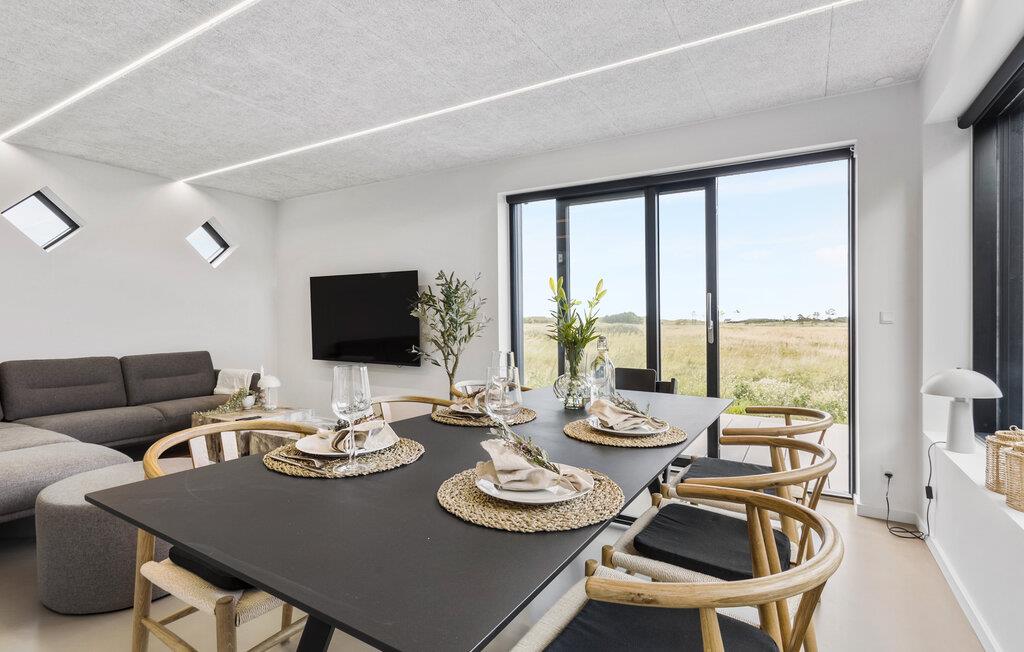 Midt i den uberørte nordjyske natur ligger dette elegante hus, hvor I får en fantastisk ramme om jeres ophold i Skagen. Huset emmer af kvalitet og lækre indretningsløsninger, som gør jeres feriedage ekstra behagelige. Tilbered dagens måltider i det åbne køkken og dæk op ved spisebordet eller på træterrassen, når solen er fremme. Oven på en lang dag med oplevelser er det herligt at vende hjem til stuens bløde møbler eller måske nyde en stille stund i boblebadet.