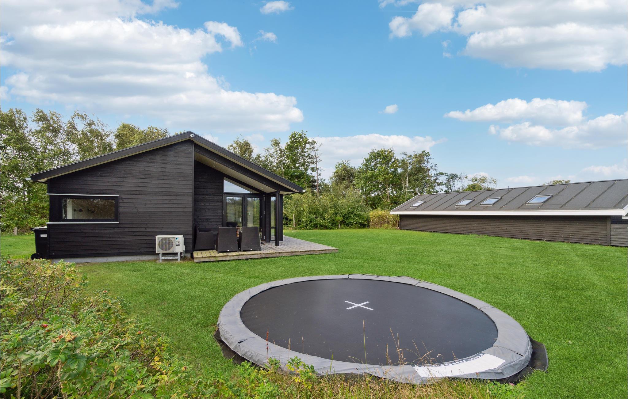 Moderne feriehus i roligt Skagen med panoramaudsigt, terrasse og trampolin tæt på natur og by.