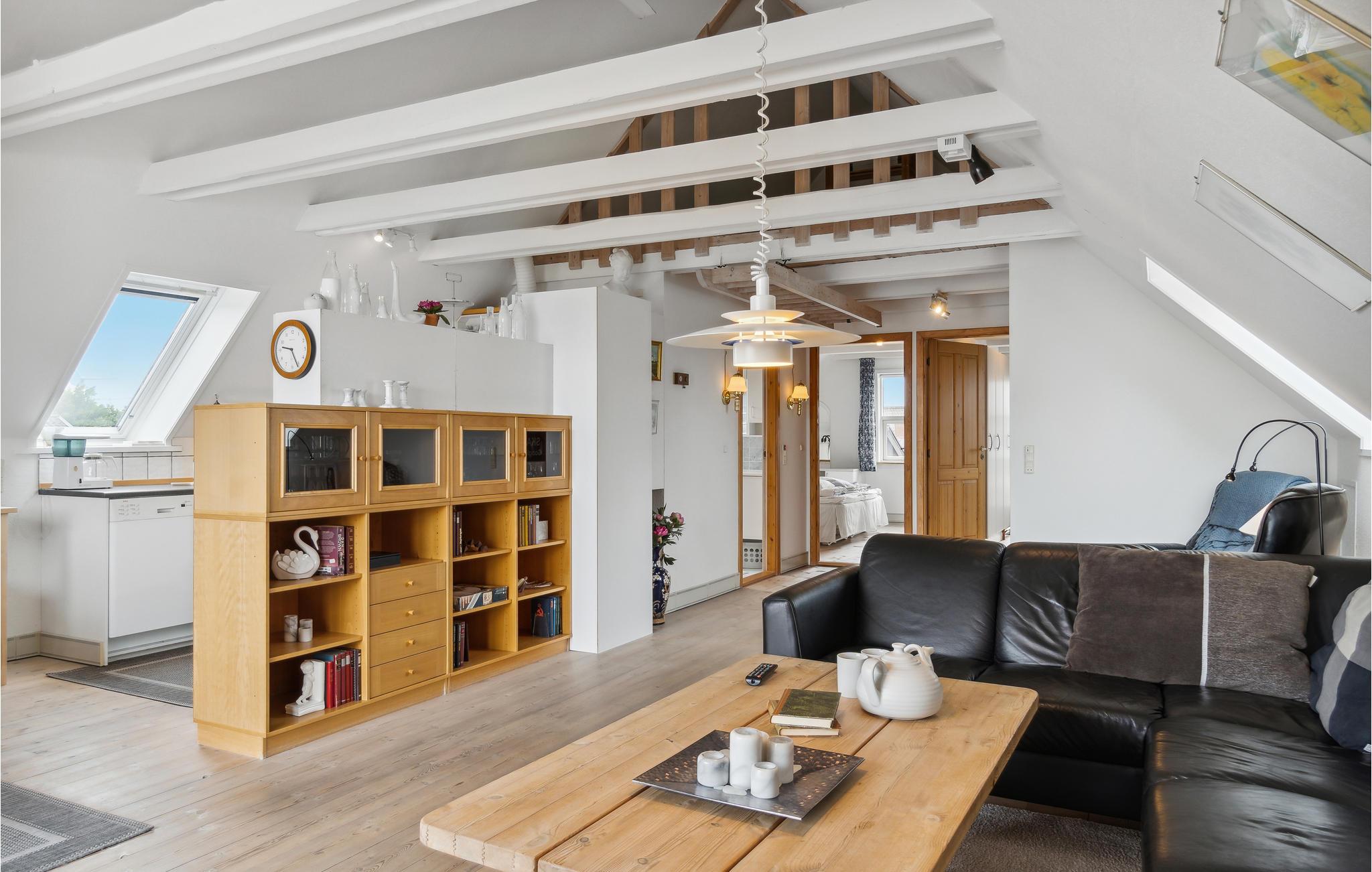 I den nordvestlige del af Skagen By i et roligt kvarter ligger denne skønne ferielejlighed på førstesalen i stor villa. Den rummelige feriebolig fremtræder særdeles indbydende og fra stuen er der udgang til stor skøn vestvendt balkon, ligsom der hører en stor terrasse med til boligen, hvor man ugeneret kan nyde udelivet. Boligen er indrettet med pæne og komfortable møbler og har fin praktisk køkkenafdeling og dejligt badeværelse. S 2 fungerer som indgang fra trappen. Der er gode indkøbsmuligheder i nærheden.