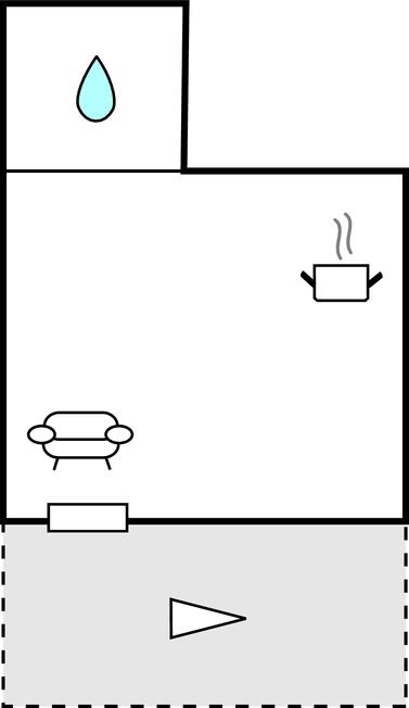 Opholdsstue/køkken - 2 Sovepladser. (Enkeltseng(e)).
