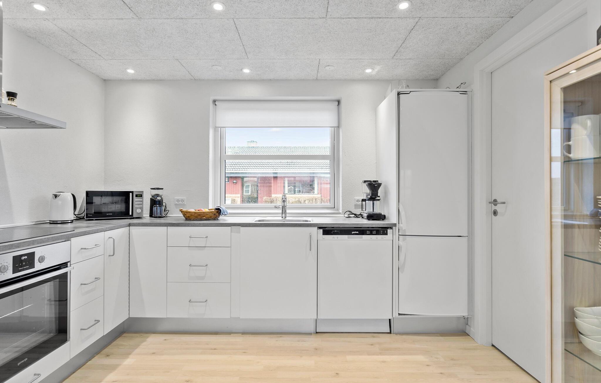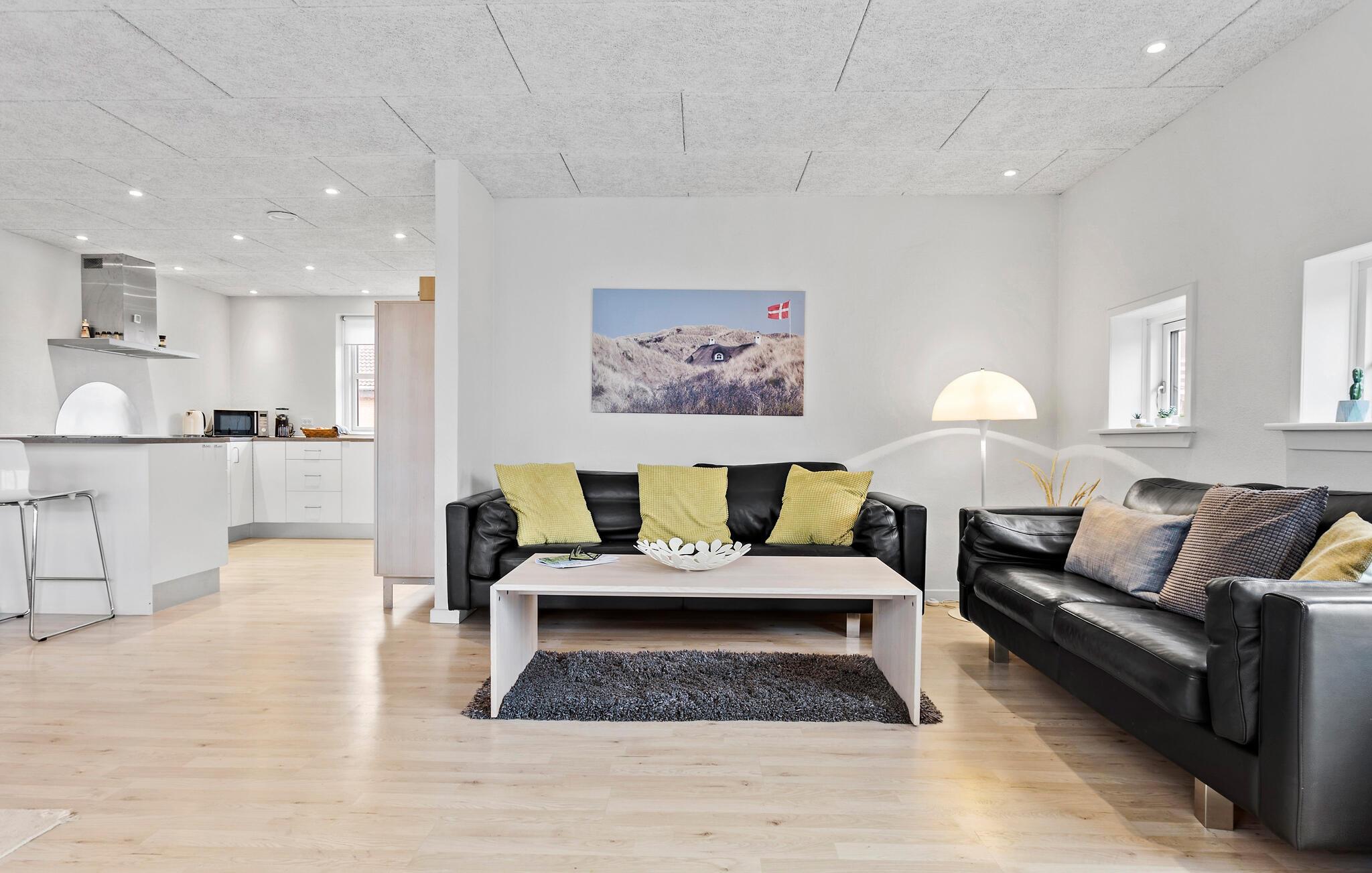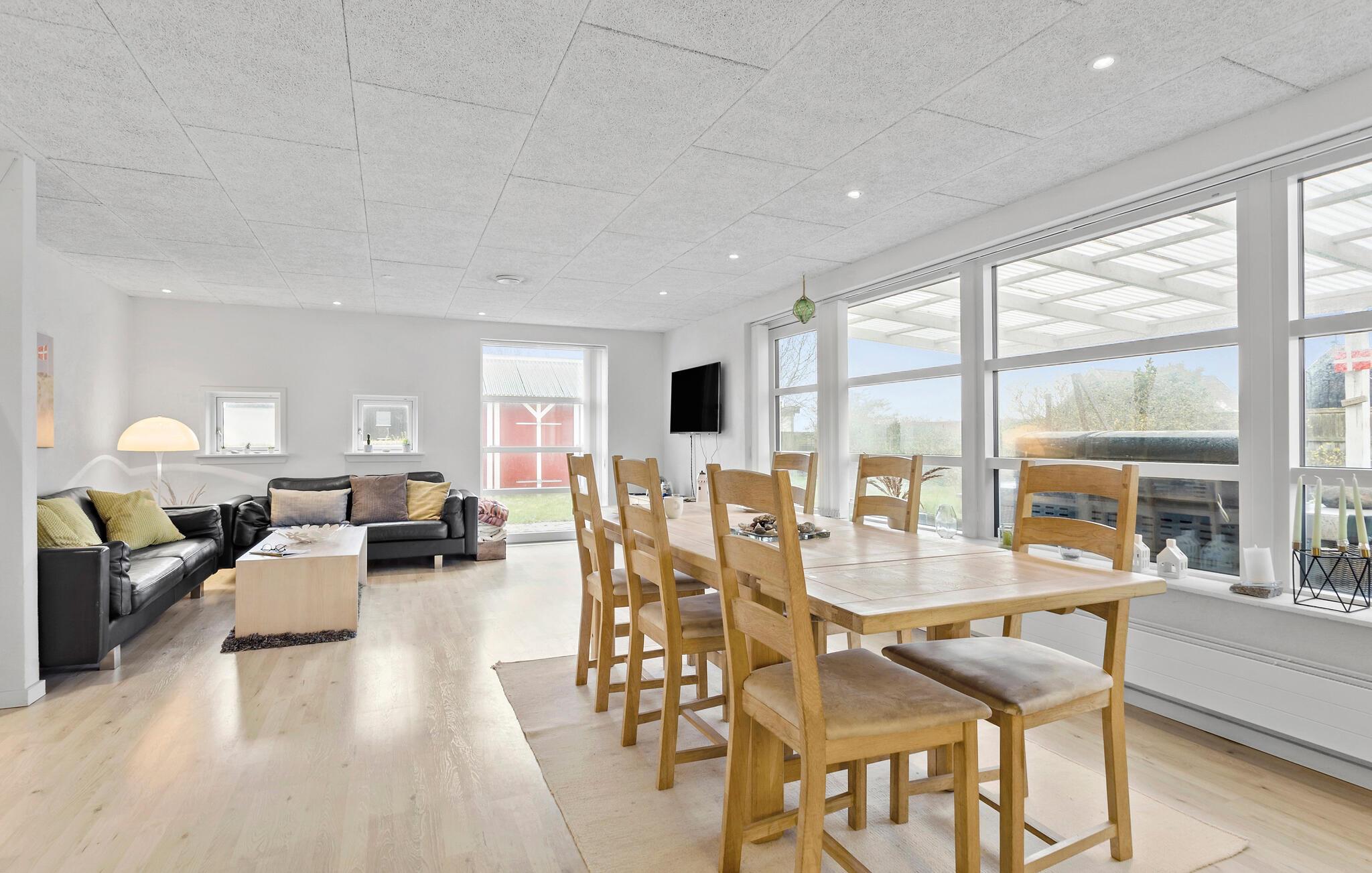 Huset er indrettet med flotte møbler og fremtræder lyst og indbydende. Udenfor finder I både en stor overdækket og en åben terrasse, hvor I kan nyde udelivet med hyggelige grillaftener. Haven fremstår som en naturgrund. Her kan I hygge jer i fulde drag og nyde ferietiden under åben himmel.