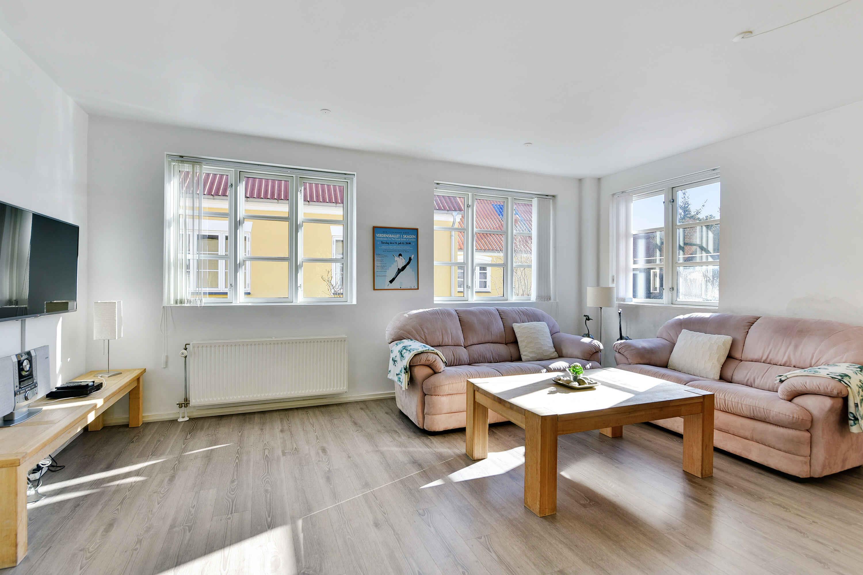 Centralt byhus i Skagen på 84 m² med 2 soveværelser, terrasse, køkken-alrum, tæt på havn og strand. Inkl. sengelinned og håndklæder. Perfekt base til ferie året rundt.