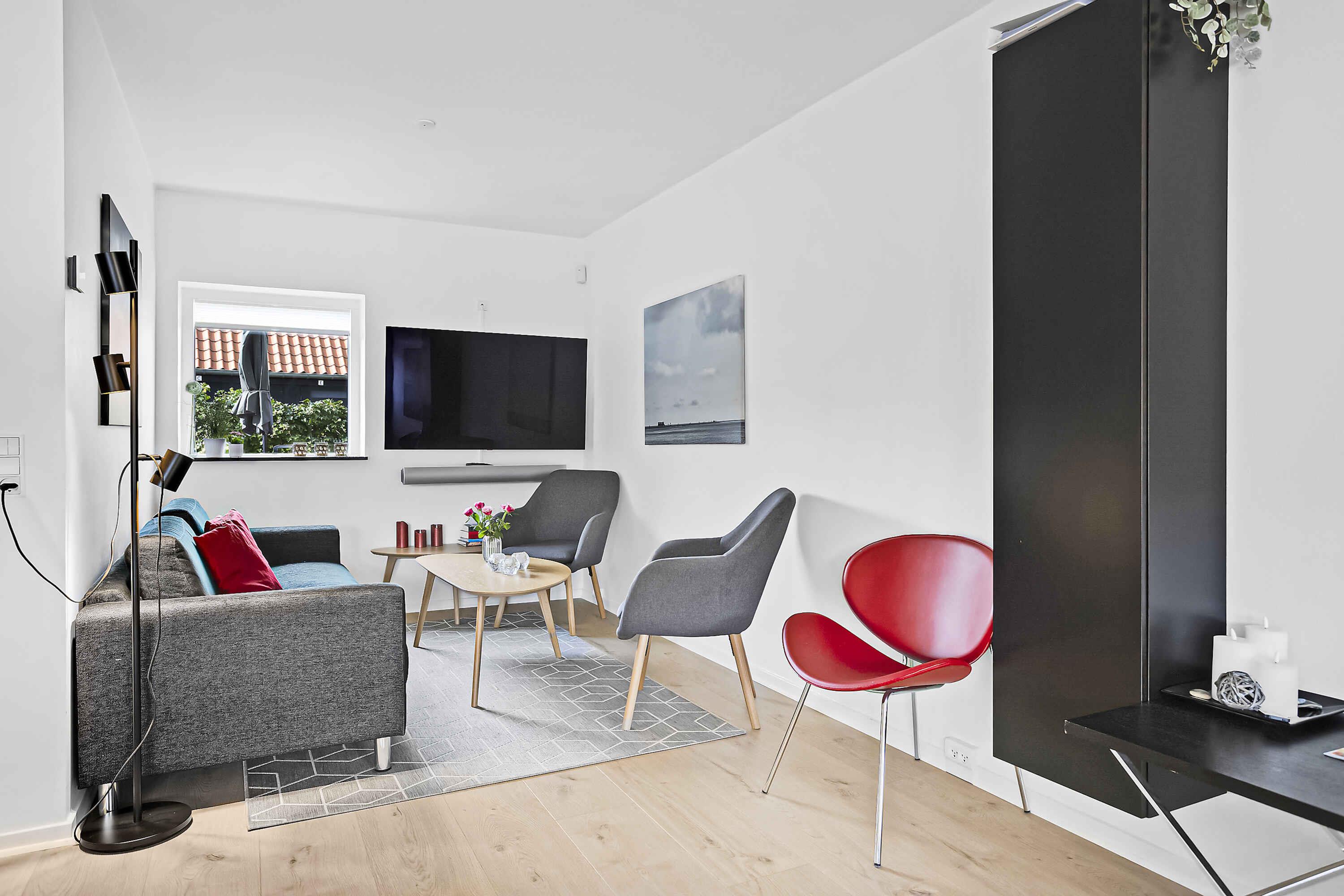 I denne skønne og moderne feriebolig befinder i jer midt i Skagen, i et charmerende gårdhavemiljø. Herfra har I adgang til midtbyens butikker og restauranter. Inden døre bydes I velkommen i et rummeligt køkken. Her vil I straks føle jer hjemme. Det er veludstyret med alle nødvendige hvidevarer. Stuen er lys og indbydende. Et stort LG Qled TV står klar til aftenens hygge. Ferielejligheden er smagfuldt møbleret. I vil nyde komforten i de tre soveværelser. På 1. sal finder I god skabsplads og mørkelægningsgardiner - optimalt for en god nats søvn. Oplev også de ikoniske gåture til den tilsandede kirke og Grenen. Dette område kombinerer natur, historie og kultur på en uovertruffen måde, hvilket giver utallige muligheder for eventyr. Den store solrige terrasse er perfekt til afslapning, udstyret med solsenge. Herfra har I direkte adgang til haven. En oase i byens hjerte. Skagen Station er lige rundt om hjørnet. Sønderstrand nås på små 10 minutter. Velkommen til Skagen.