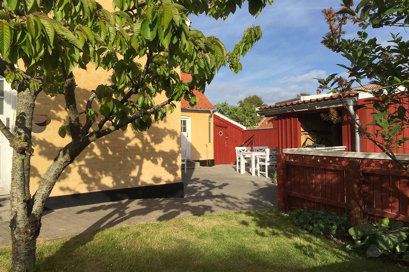 Ferieboligen er beliggende på en 267 m² stor havegrund. Grunden er indhegnet. Der er 500 m til havet. Nærmeste forretning er beliggende i en afstand af 100 m. Til ferieboligen hører 50 m² terrasseareal. Der er redskabsrum. Der er mulighed for at tilberede maden udendørs i udekøkkenet. Parkering ved ferieboligen.