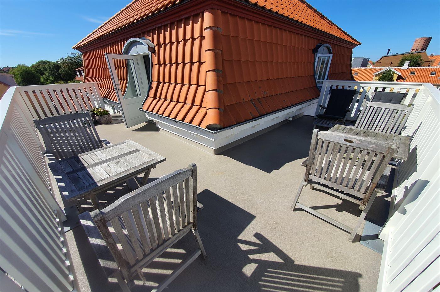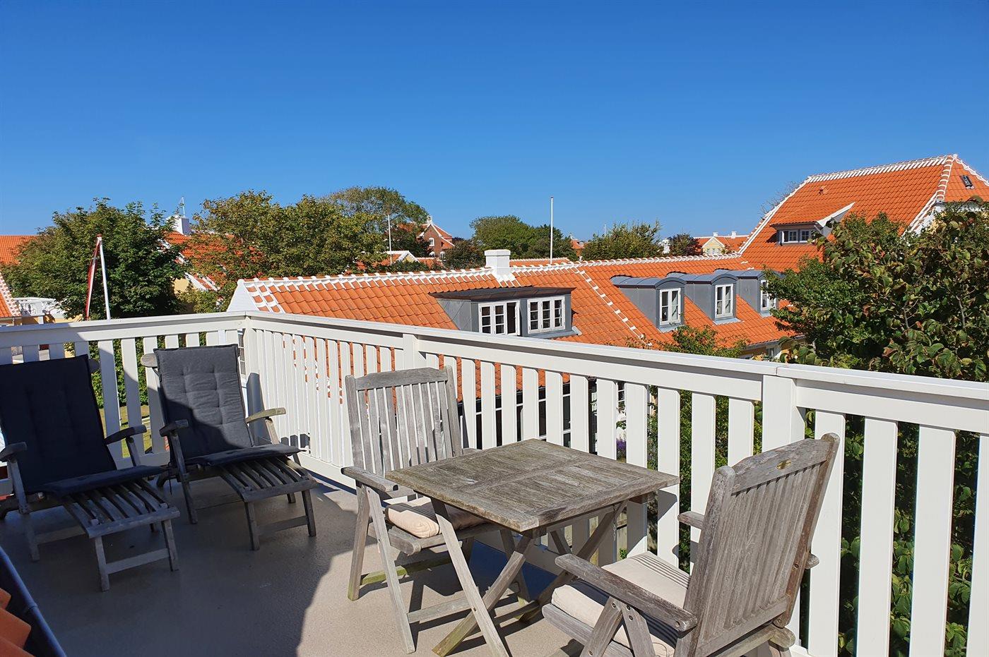 Skøn og flot indrettet ferielejlighed beliggende på 1. sal i et flot moderniseret skagenshus med respekt for den oprindelige stil. Fra stuen er der udgang til dejlig tagterrasse på det syd-øst vendte hushjørne. Med den centrale placering i byen ligger centrum, havn, strand og byens mange attraktioner indenfor rækkevidde.