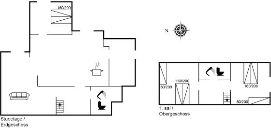 Der er i alt 3 soveværelser. Sovepladserne fordeler sig på: 6 sovepladser i dobbeltsenge. 2 sovepladser i enkeltsenge.